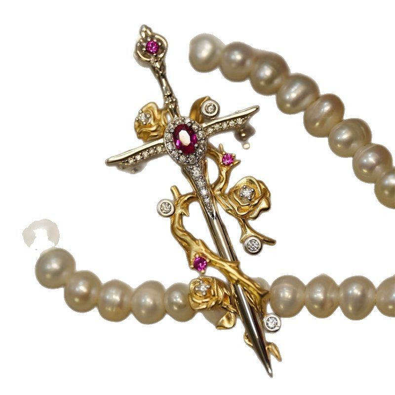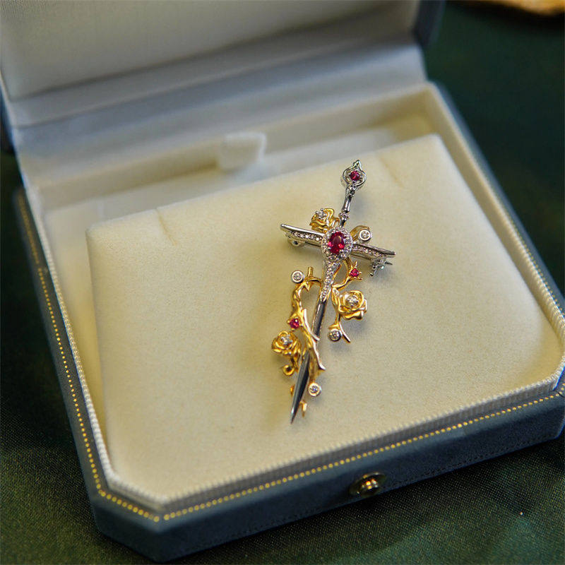 《荆棘玫瑰两用款》胸针吊坠之剑vintage复古十字架小众高级礼物