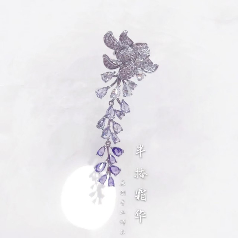 紫藤萝花胸针华丽满钻紫藤胸针优雅长流苏胸针高端优雅别针高颜值