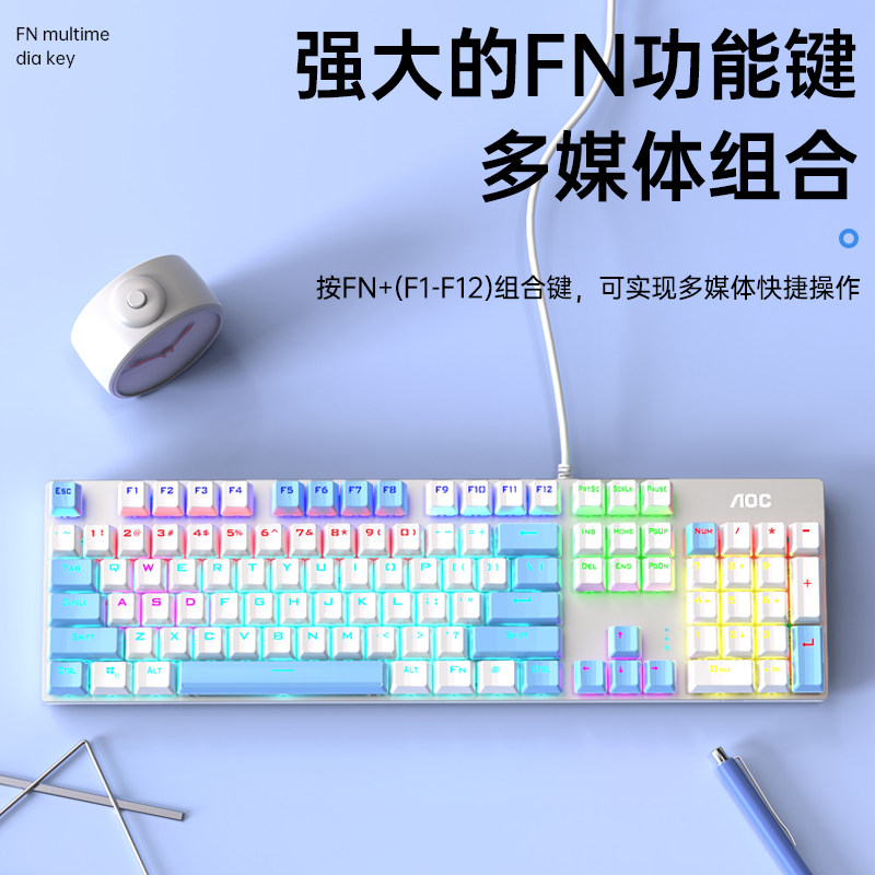 AOC电竞机械键盘等高线4.0渐变侧刻青茶红黑轴电脑游戏办公笔记本