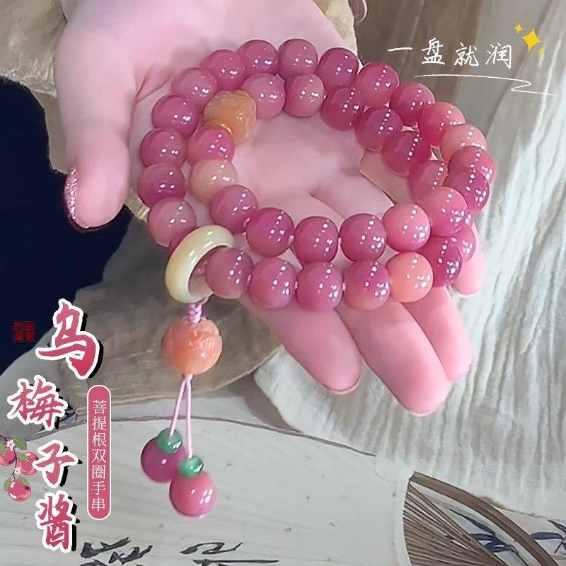 抖音同款乌梅子古风菩提子手串双圈手持盘玩手链女款菩提根莲花