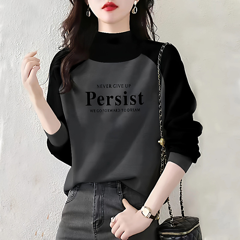 半高领德绒长袖秋冬季新款拼接大码百搭显瘦撞色打底衫女上衣T恤B
