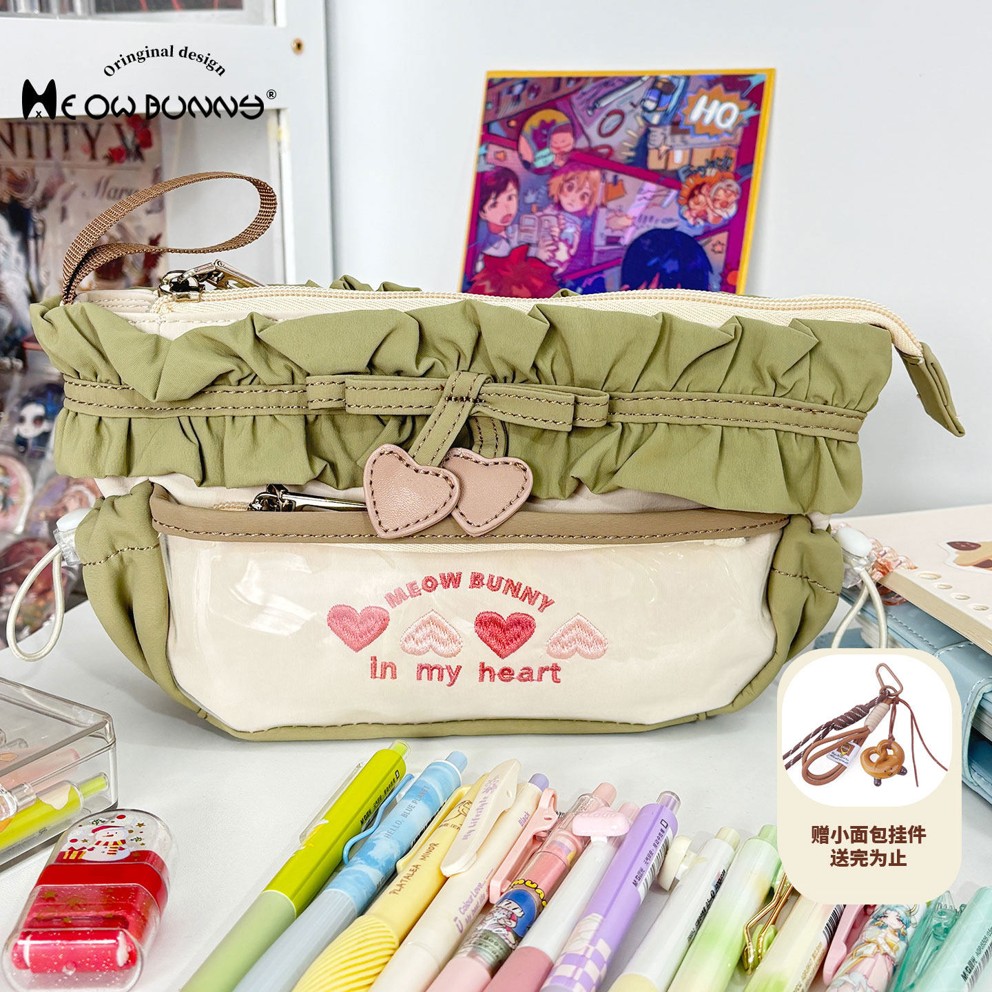 meowbunny甜心痛 笔袋高颜值ins风痛包透明可放小卡爱心刺绣笔袋大容量学生文具收纳袋2025新款可爱手拿包