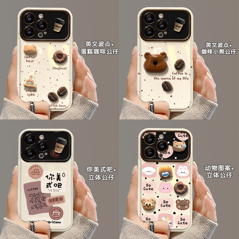 新品上市,翻盖大视窗咖啡公仔手机壳