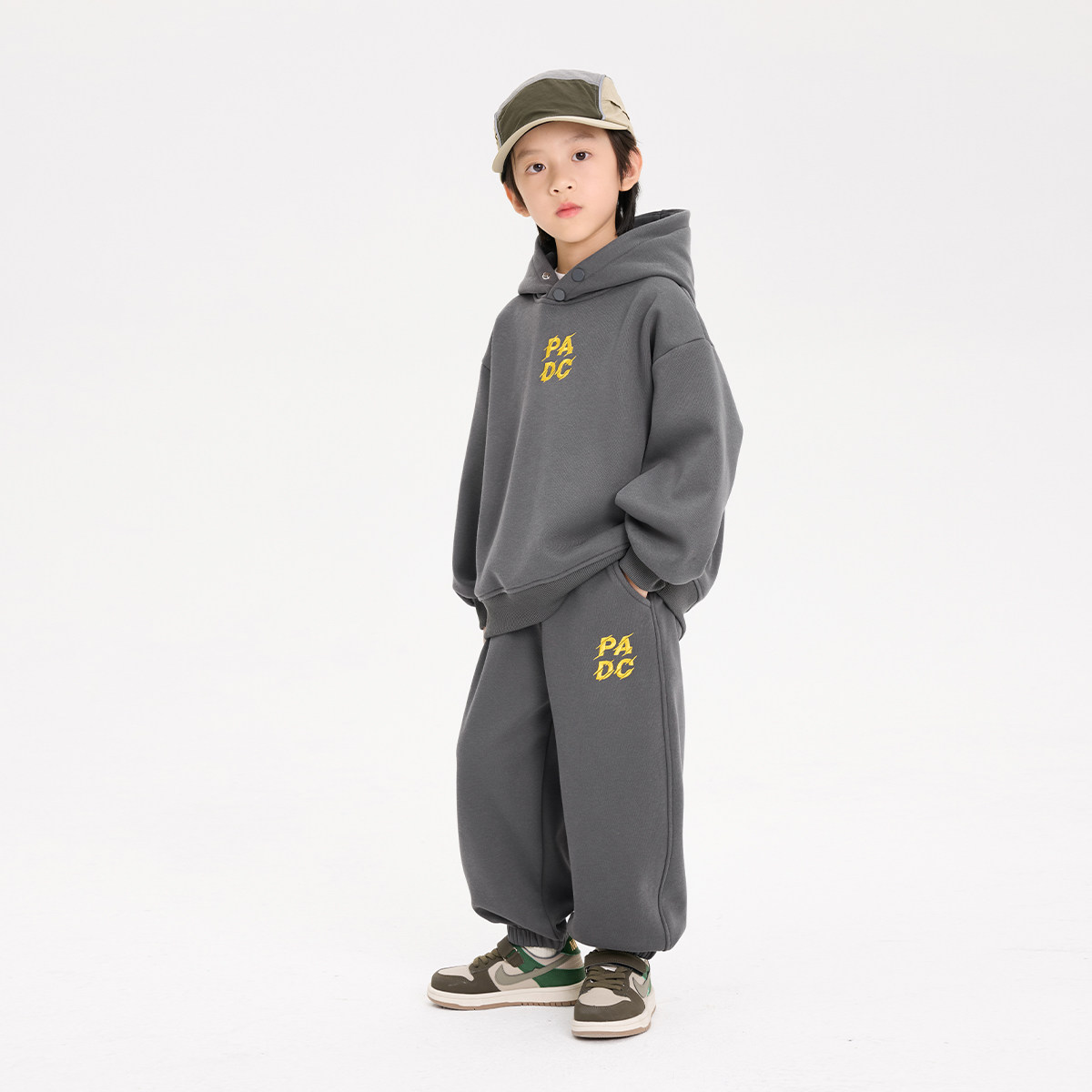 派町童装男童套装儿童加厚加绒保暖运动连帽套装2025新款秋冬款潮