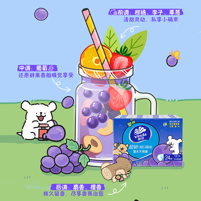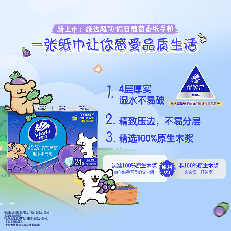 维达线条手帕纸小狗假日葡萄香纸巾4层便携卫生餐巾纸面巾纸随身
