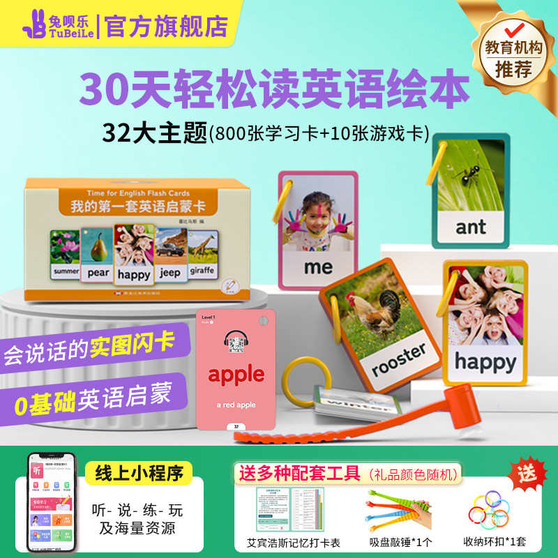 兔呗乐实物英语单词闪卡TPR闪卡幼儿早教启蒙单词卡片32类英文高频词闪卡宝宝海尼曼英语启蒙牛书童点读笔