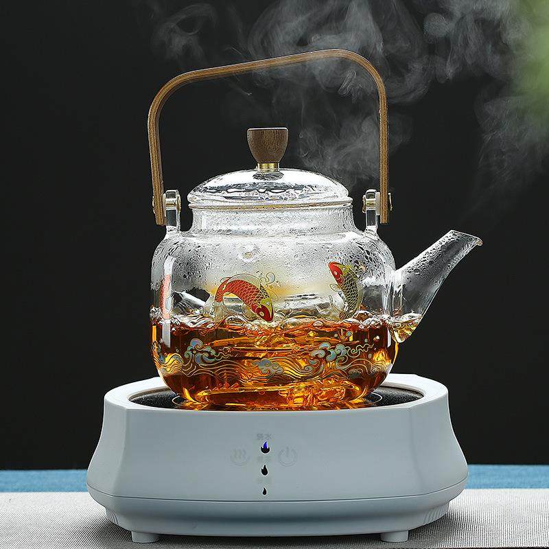 玻璃蒸煮茶壶家用电陶炉烧水壶专用茶具加厚黑茶提梁壶泡茶器套装
