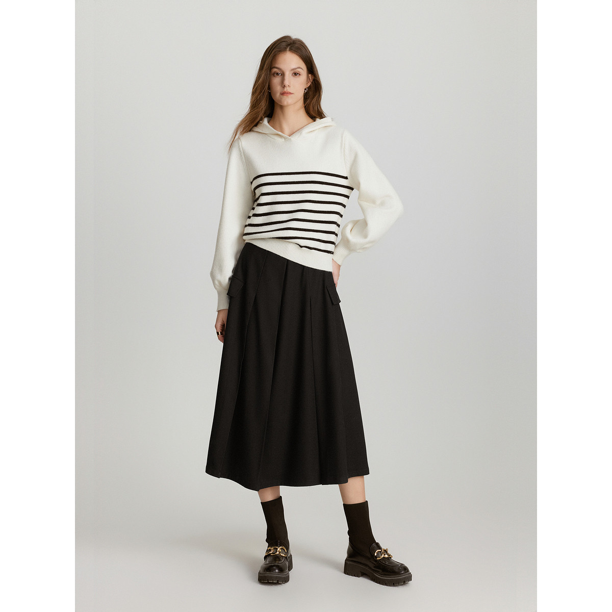 秋冬羊绒半身裙女秋冬新款中长高腰显瘦百褶大摆裙A字针织羊毛裙