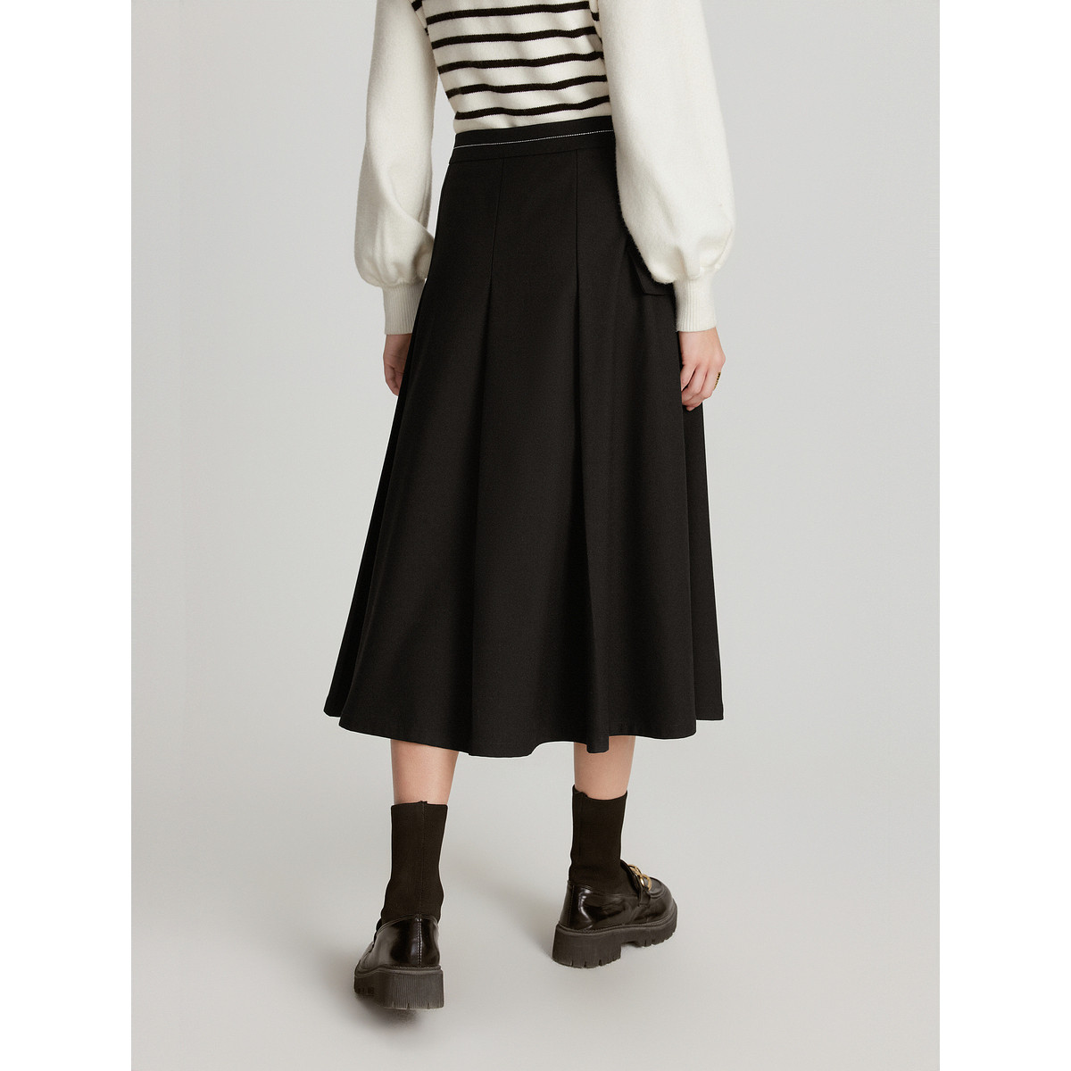 她池松紧腰百褶裙2025秋装新款女装时尚简约中长款A字高腰半身裙