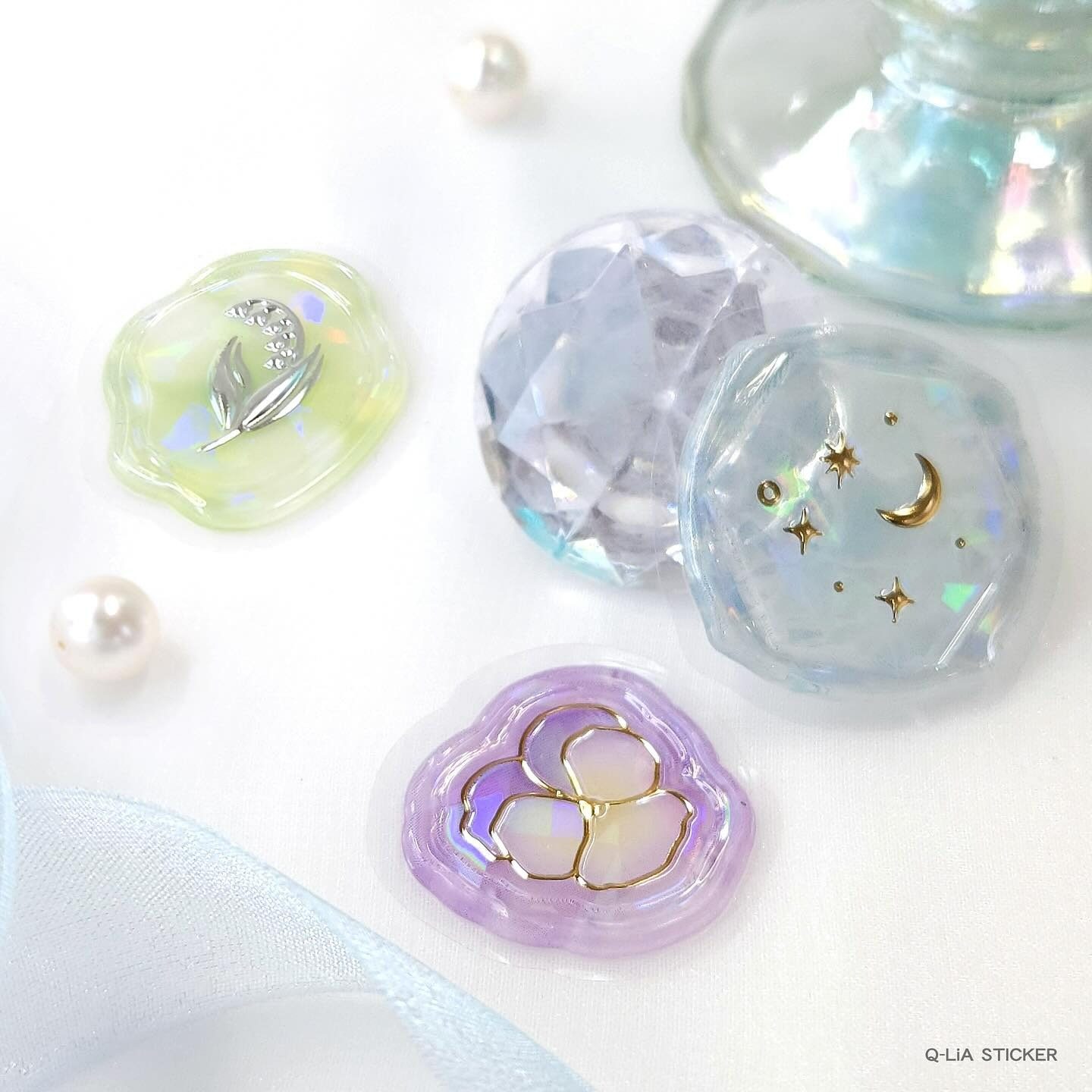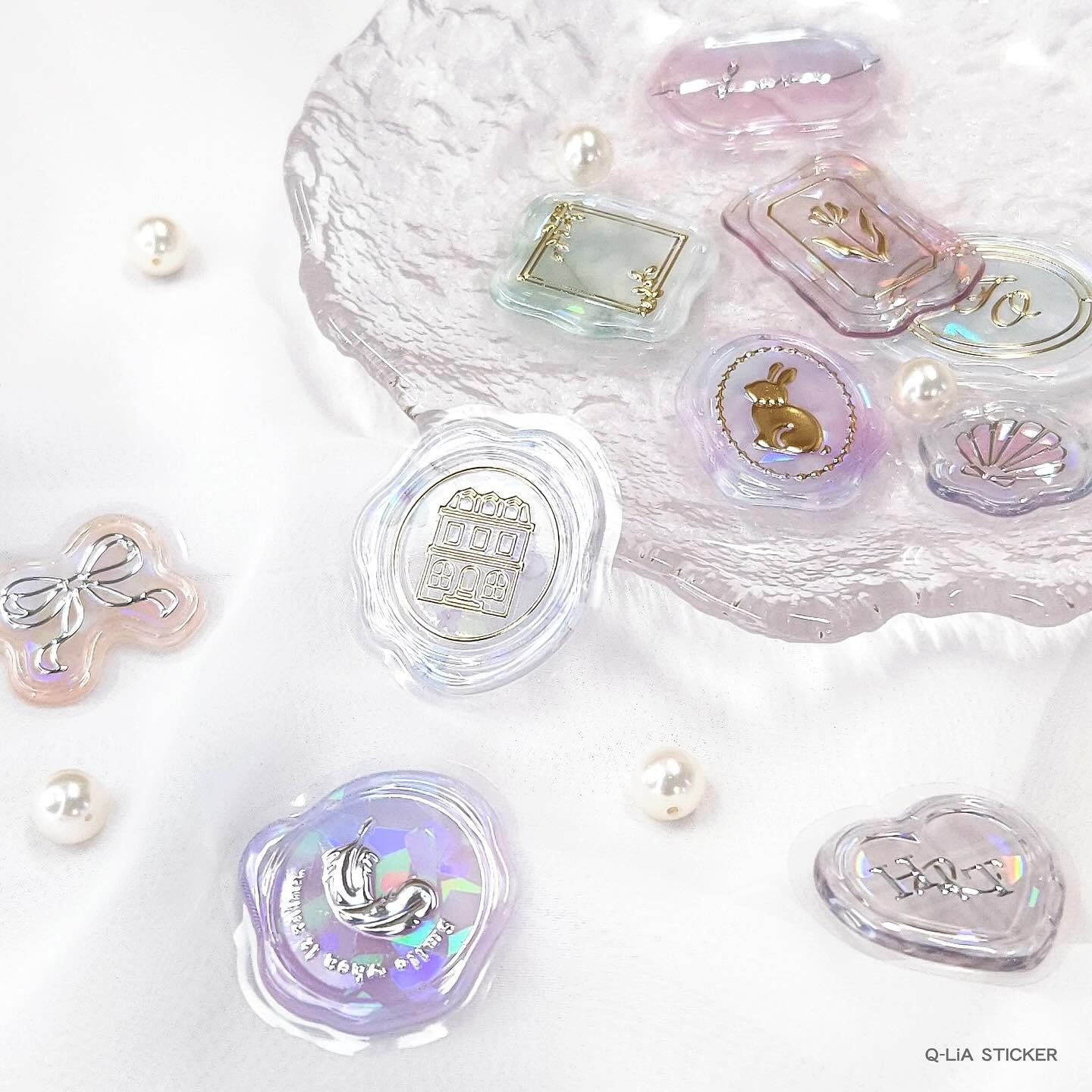 仿火漆印章限定 日本 Q-lia限量镭射亮片透明烫金立体塑料贴纸包