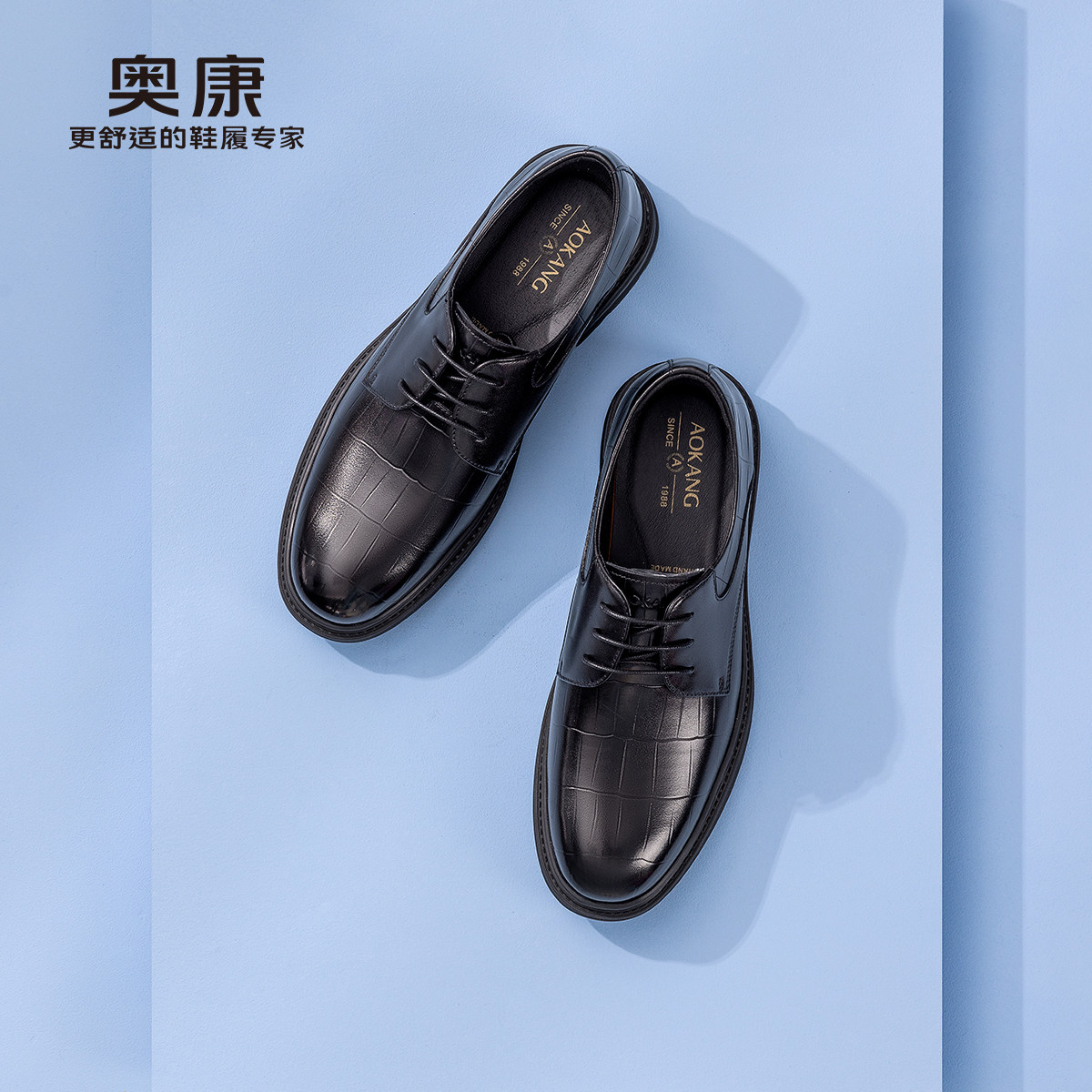 奥康男鞋春秋季商务正装皮鞋牛皮办公室真皮系带男士工作大码皮鞋