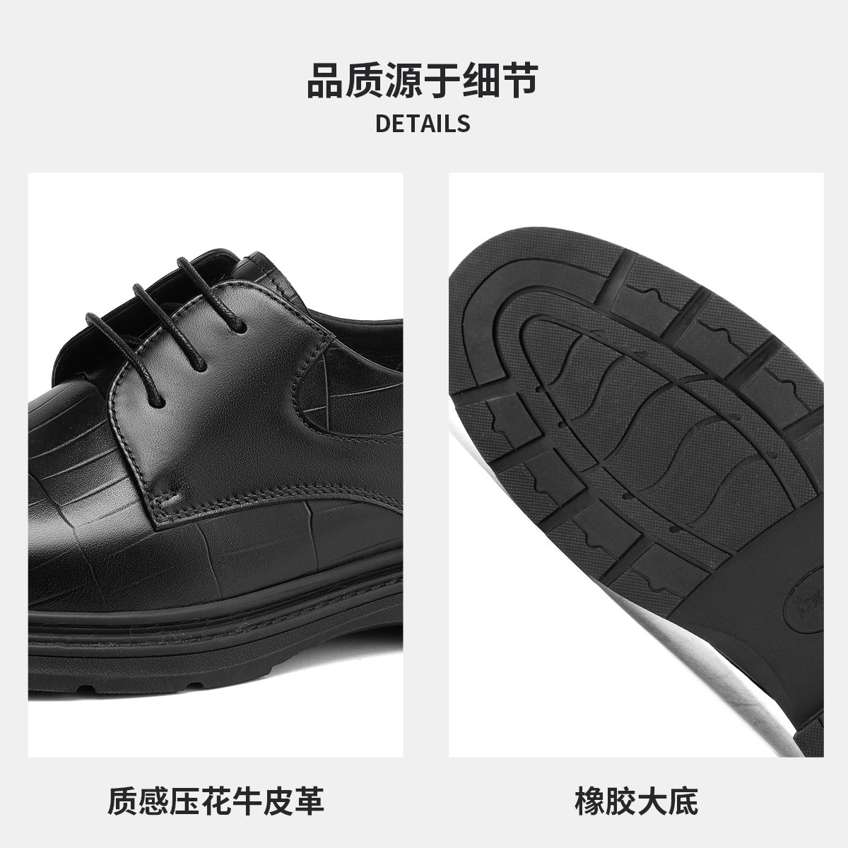 海澜之家男鞋秋冬季正装商务真皮布洛克内增高皮鞋男款加绒德比鞋