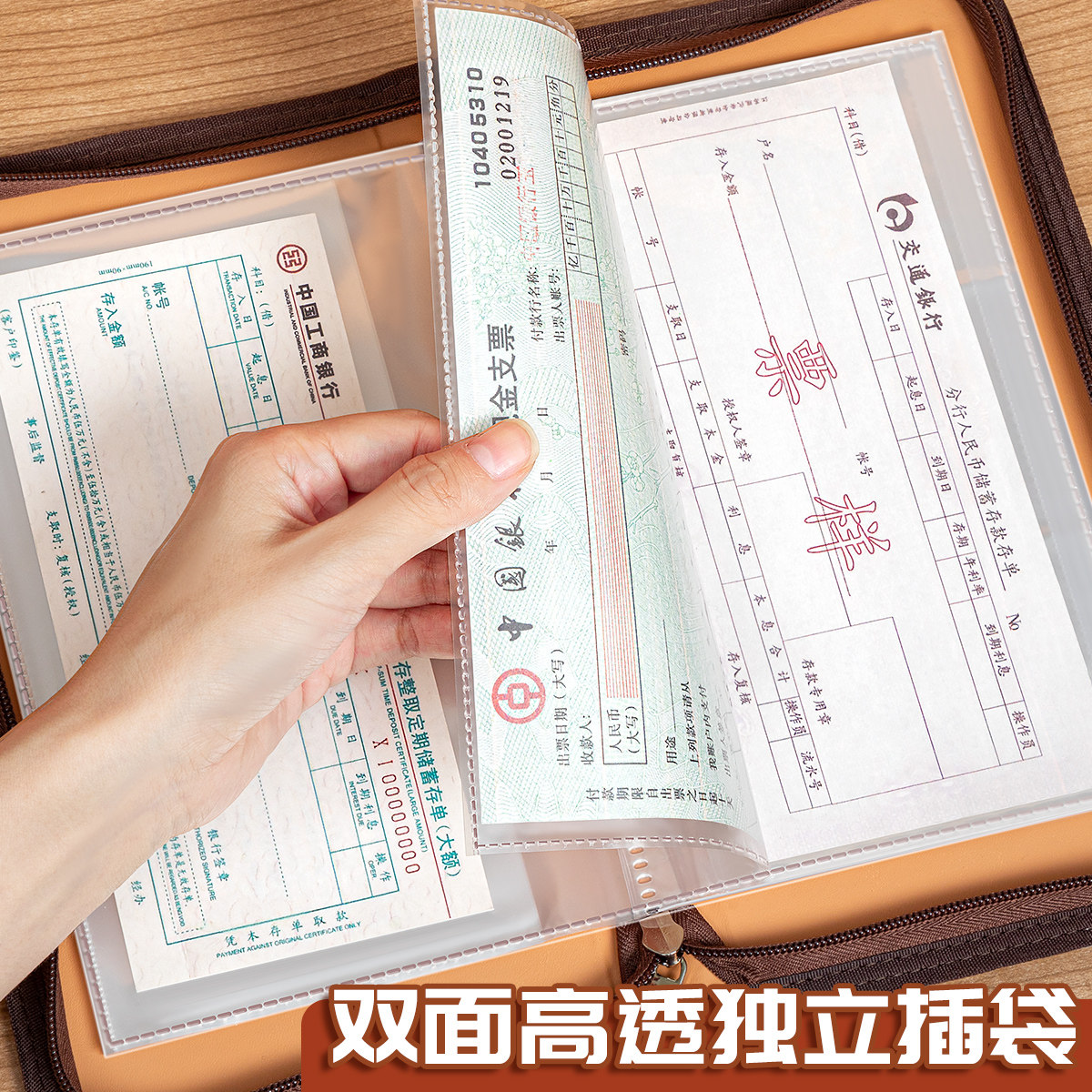 定期存折存单收纳本拉链多功能票据存单夹2026新款家庭现金银行卡防水一体大容量收集存款活页支票专用夹子