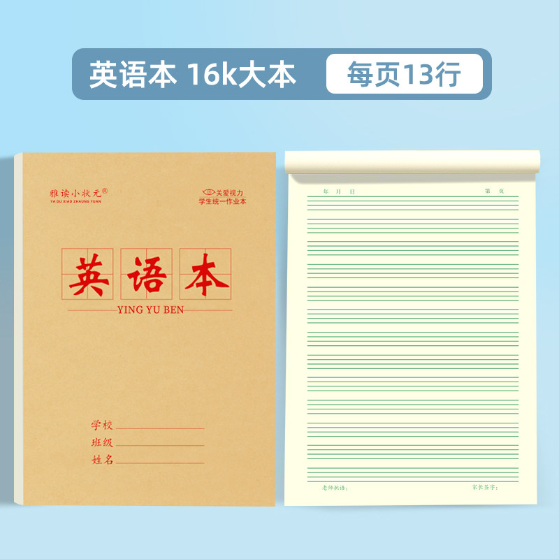 16K作业本加厚双面数学语文本中小学生英语本拼音本三年级大田字生字护眼纸张学生用练习本统一标准大本