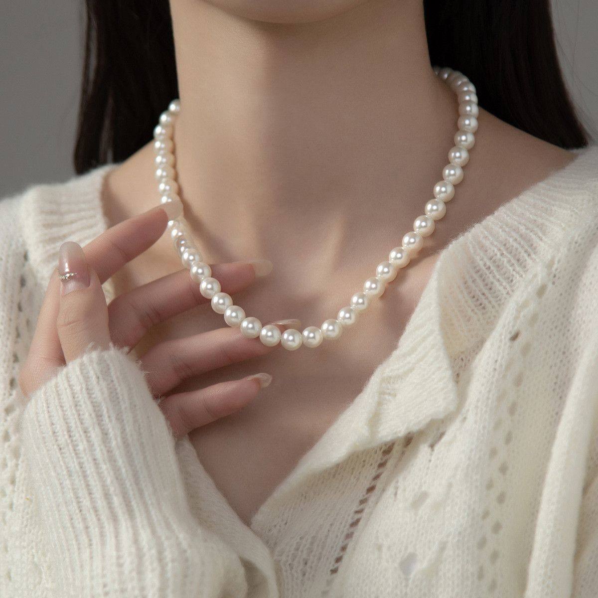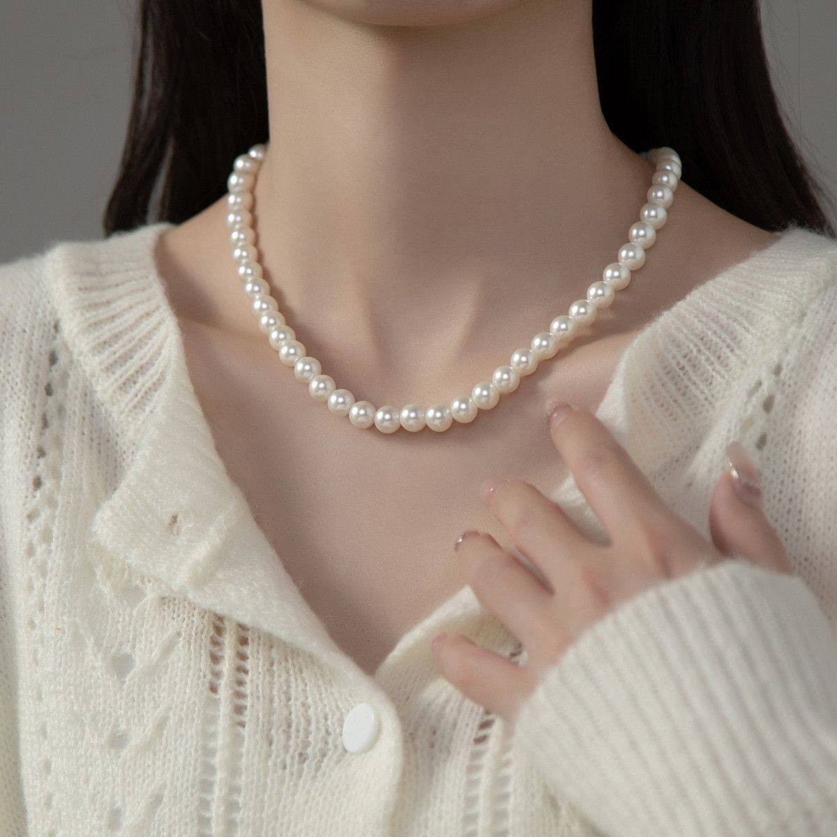 澳白色珍珠项链女款百搭优雅秋冬毛衣链正圆强光人造珍珠锁骨颈链