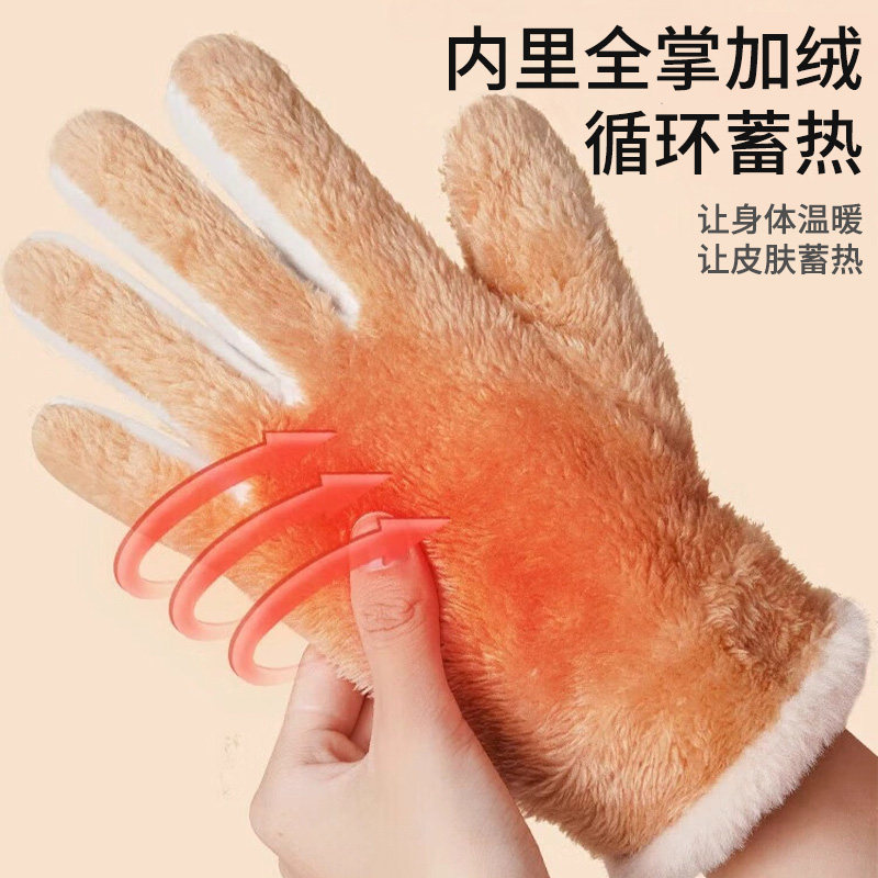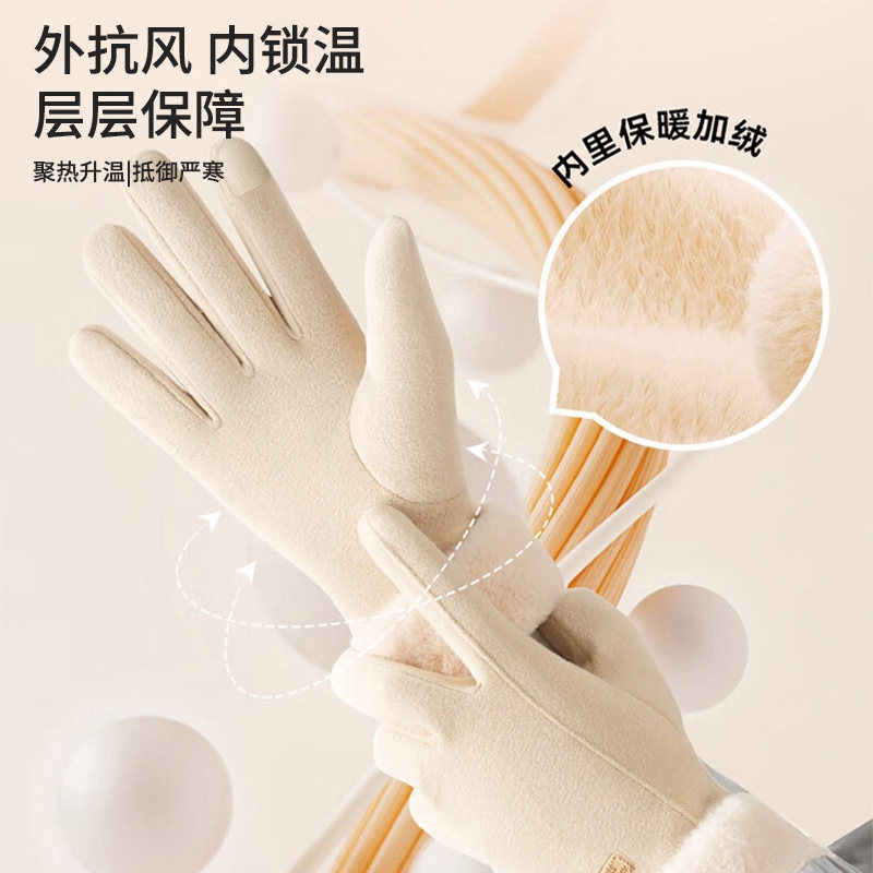 保暖手套冬天加绒加厚可爱麂皮绒女士骑行防寒骑车防风触屏冬季女