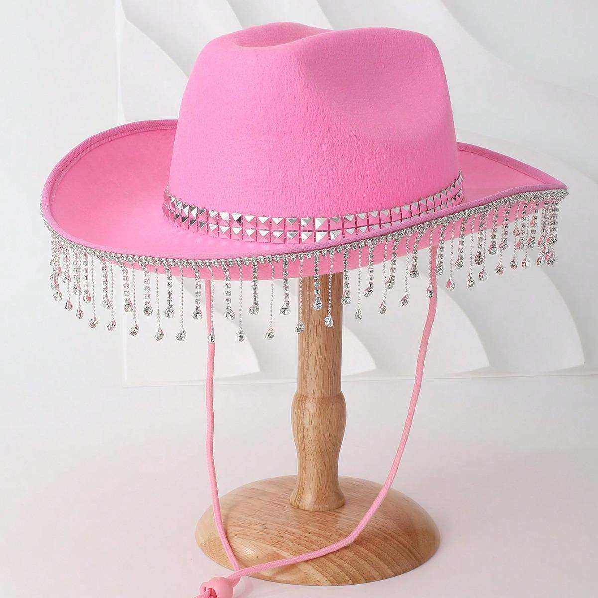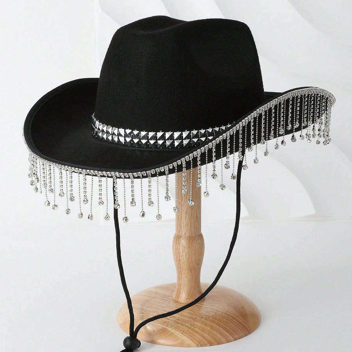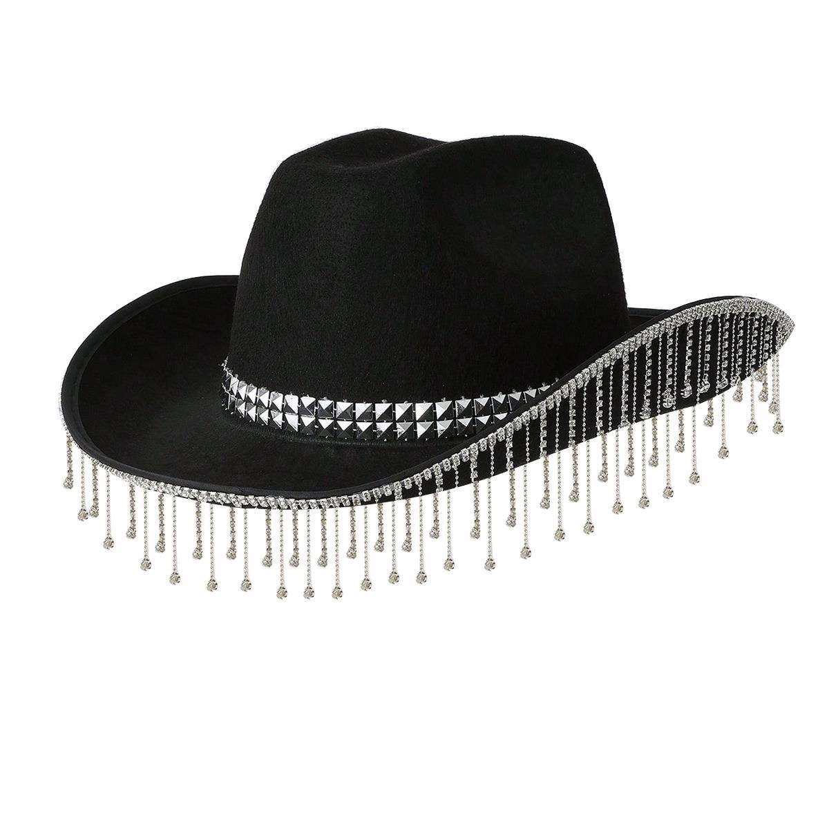 欧美热款男女款牛仔帽 优雅菱形亮片搭配水钻流苏爵士帽 狂欢派对