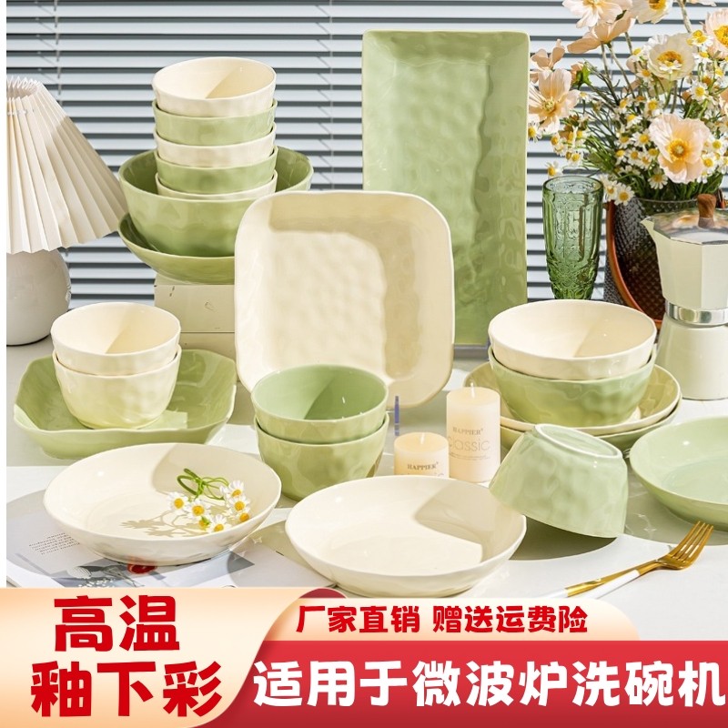 奶油风碗碟套装高颜值碗家用2024新款釉下彩碗盘碗筷乔迁新居餐具