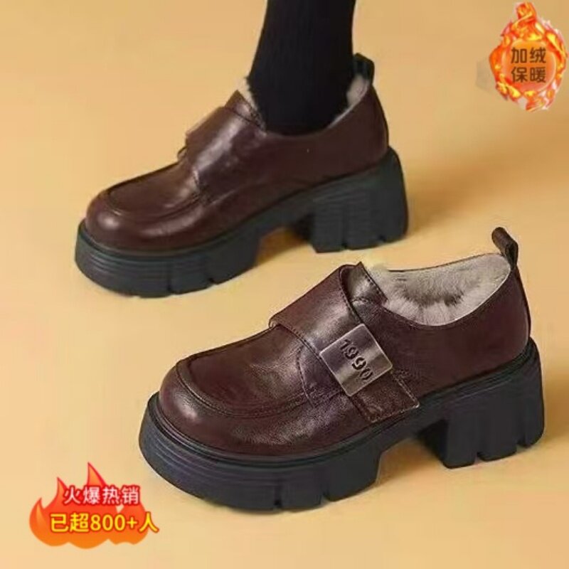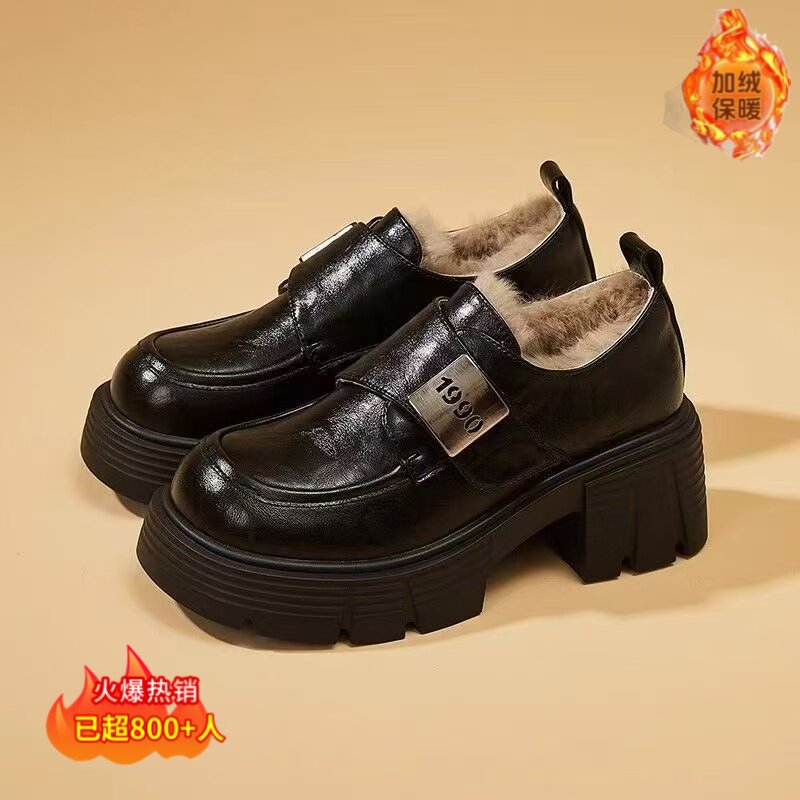 欧货真皮厚底小皮鞋女英伦风圆头加绒德比鞋小个子增高乐福鞋单鞋