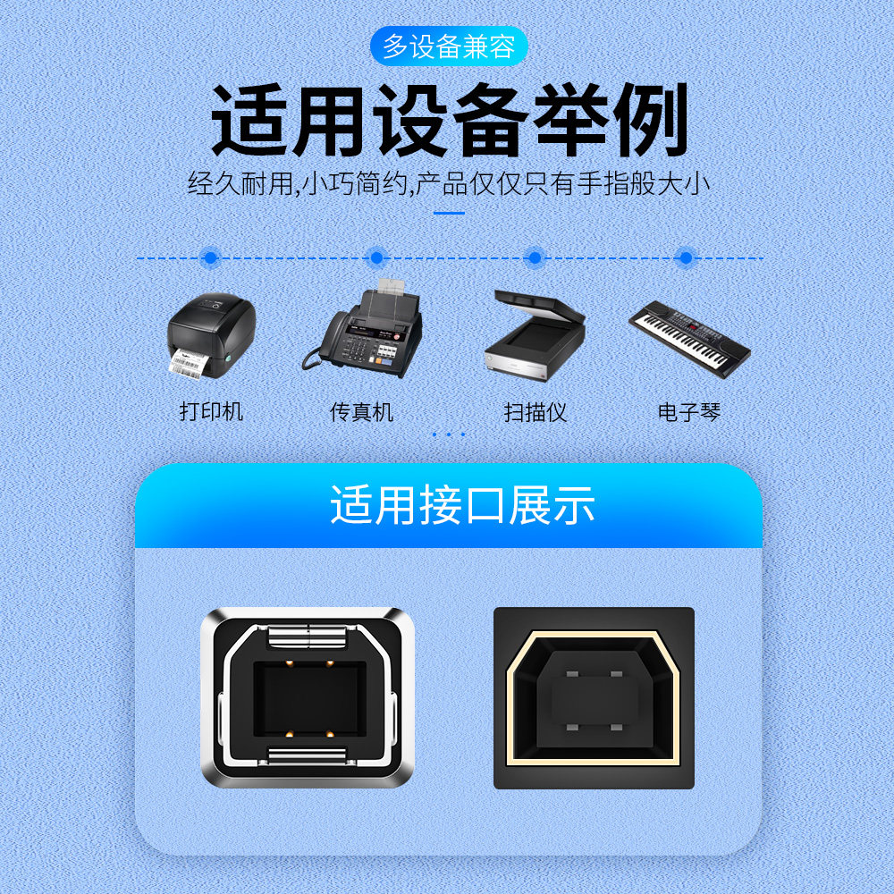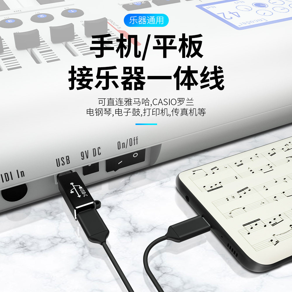 协德type-c母口转USB方口转接头 手机连接乐器打印机电钢琴扫描仪