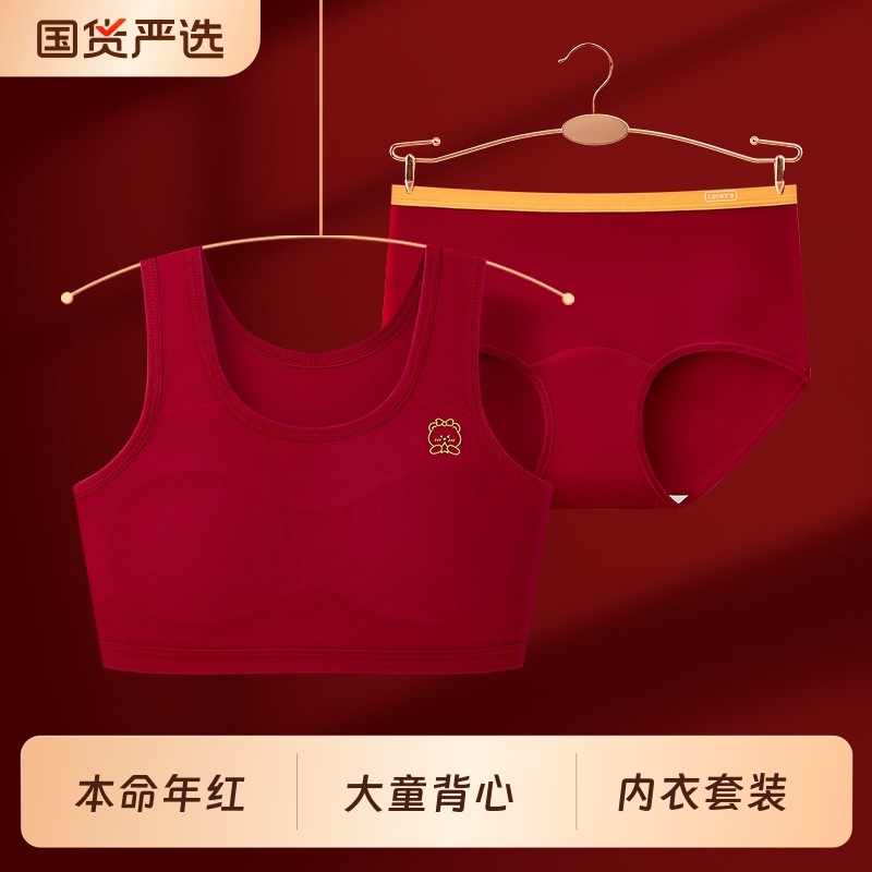 本命年内衣内裤套装女大童红色背心学生12岁女孩纯棉2026年属马年
