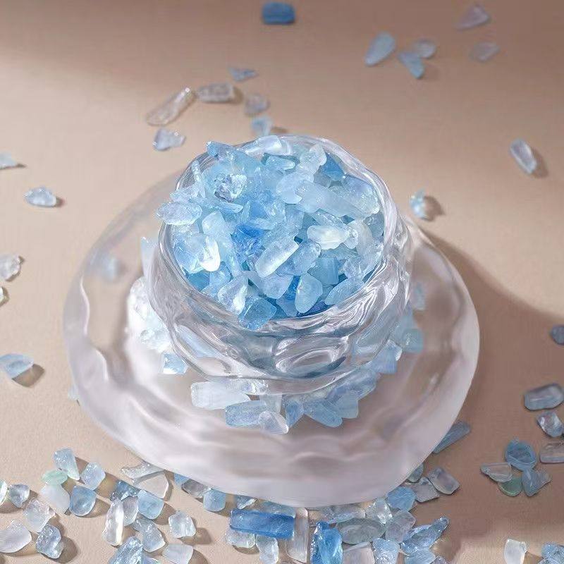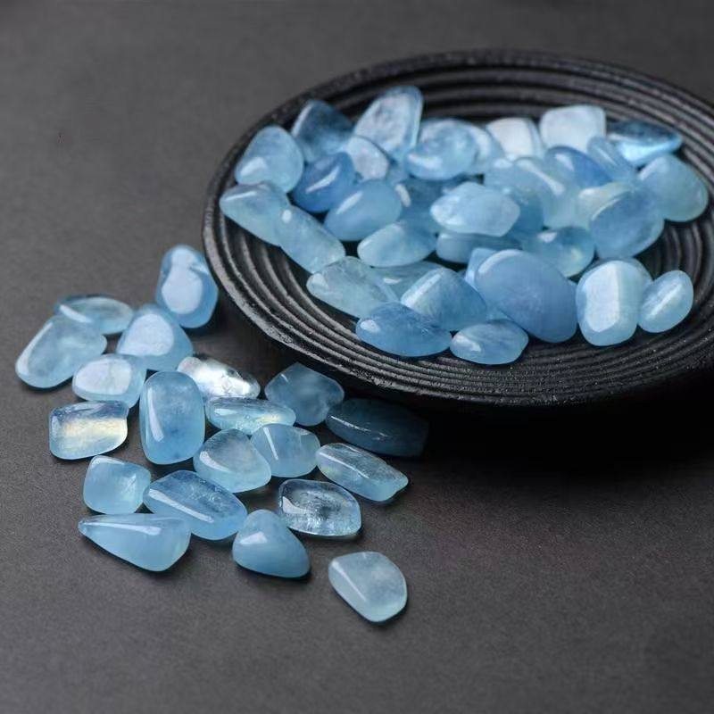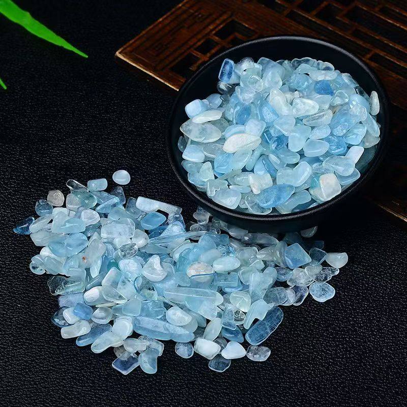 天然摆件海蓝宝水晶消磁石鱼缸花盆造景石配件家居客厅装饰品