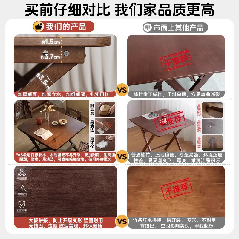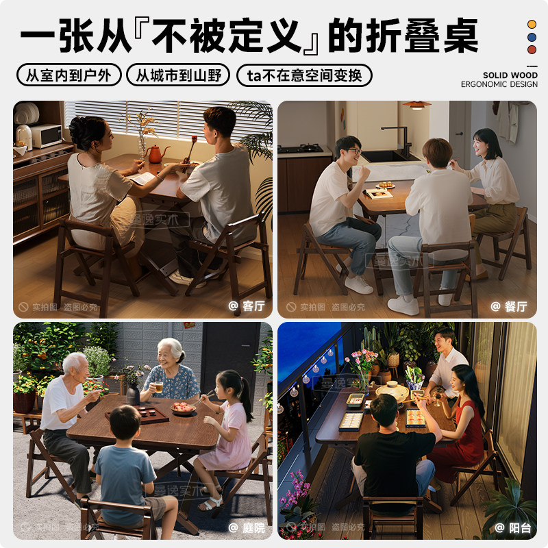 实木手搓麻将桌掼蛋桌子家用简易可折叠吃饭桌子餐桌小户型四方桌