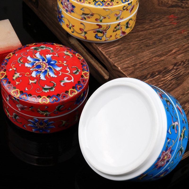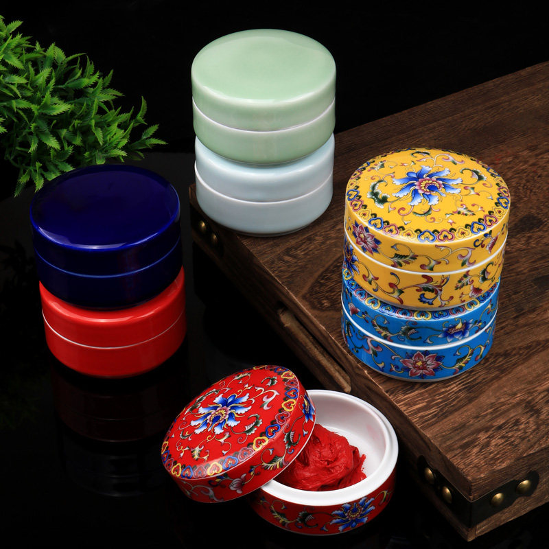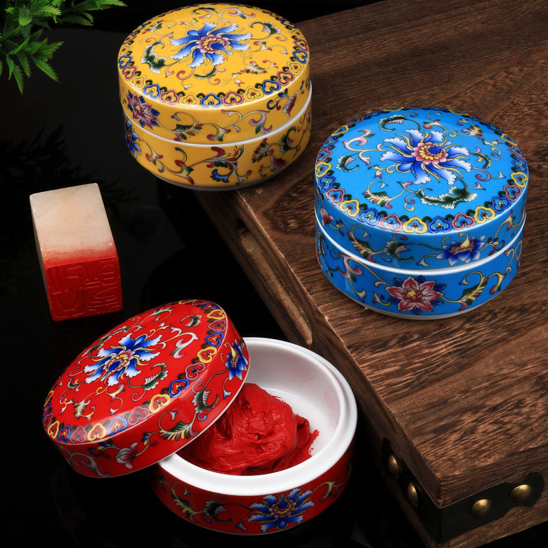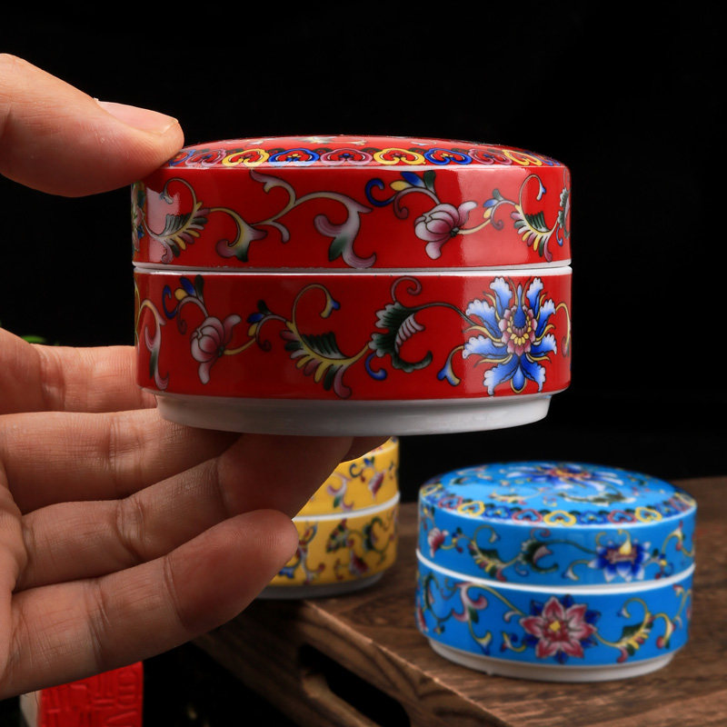 光祖珐琅彩朱砂印泥盒印泥签书画瓷缸朱砂印泥瓷盒景德镇陶瓷书法书画印尼盒大号收纳盒空盒墨盒墨池锦盒文房