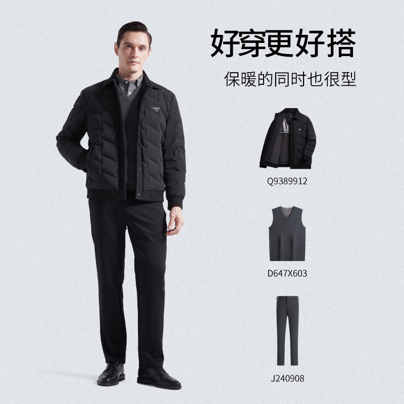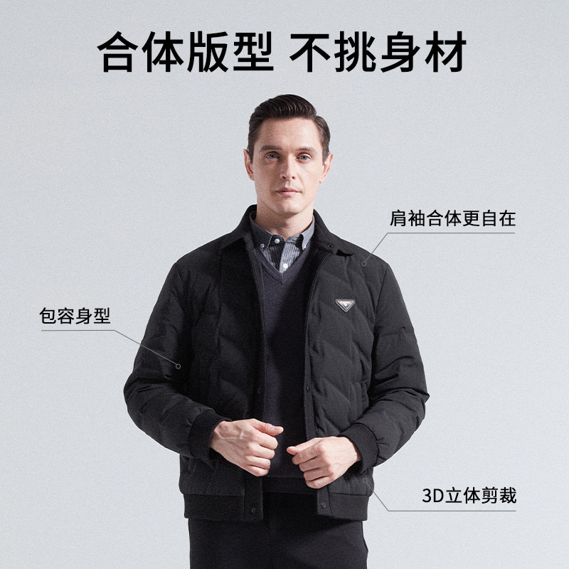 杉杉新款羽绒服男士冬季鸭绒保暖加厚翻领夹克商务防寒外套爸爸装