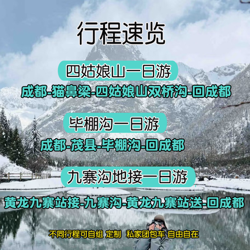 私家团川西四姑娘山一日游毕棚沟1天成都包车纯玩周边旅游2-8人团