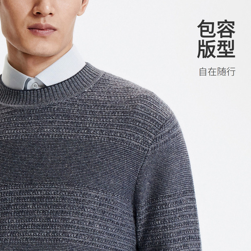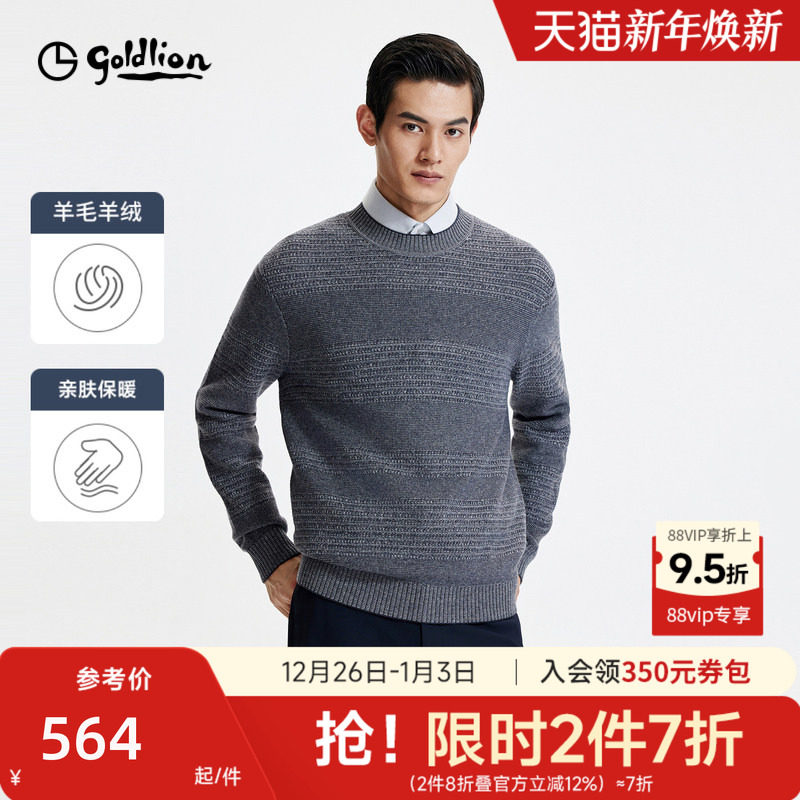 【含羊绒羊毛】金利来秋冬新款保暖加厚绞花圆领套头毛衣针织衫男