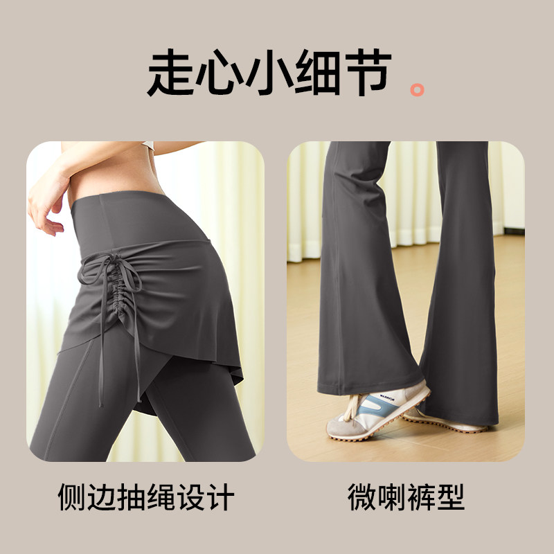 瑜伽裤女假两件屁帘裙裤高腰紧身运动健身喇叭裤普拉提训练服微喇