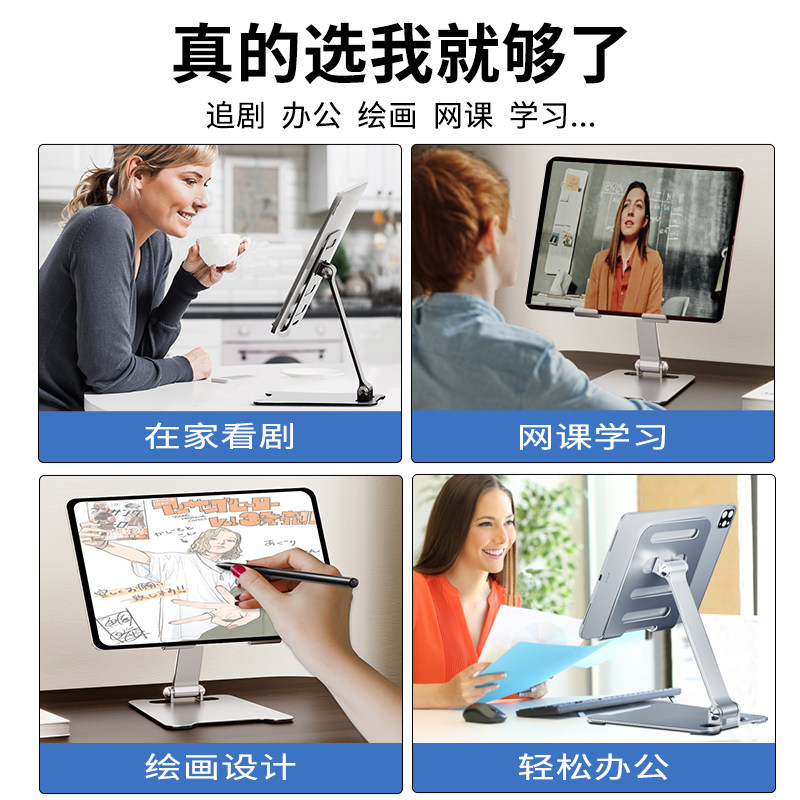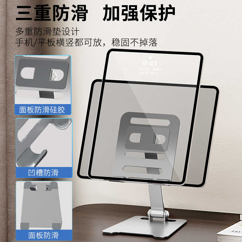手机平板桌面支架ipad懒人金属专用支撑架可升降折叠易便携散热硅胶防护架子直播学习拍摄网课娱乐办公通用