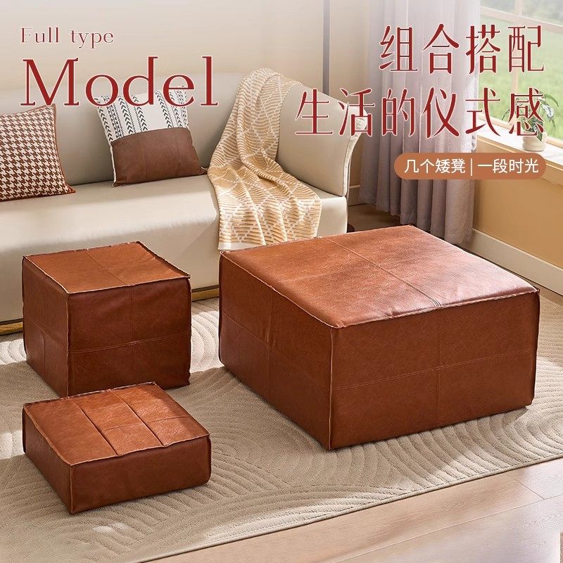 收纳凳轻奢皮墩榻榻米坐垫客厅家用坐墩油蜡皮坐垫旧衣服收纳袋