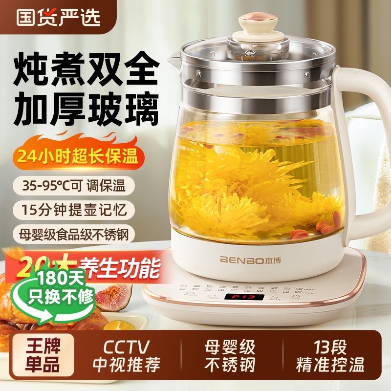 德国本博养生壶办公室小型家用炖煮一体玻璃煮茶器2025新款烧水壶