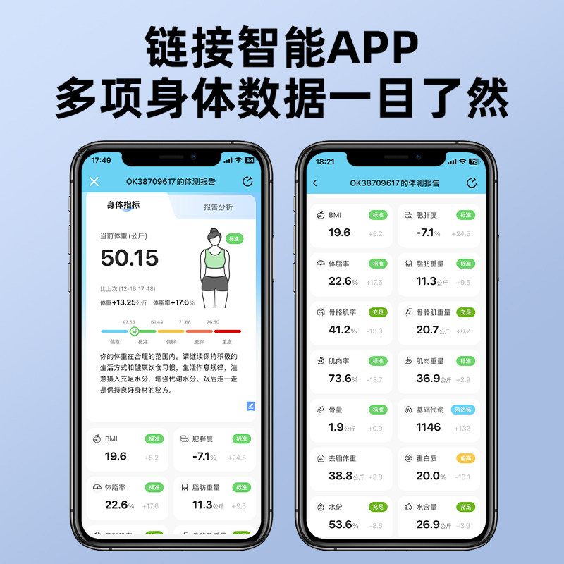智能体脂秤充电电子称专业称重小型精准耐用人体体重秤家用测脂肪