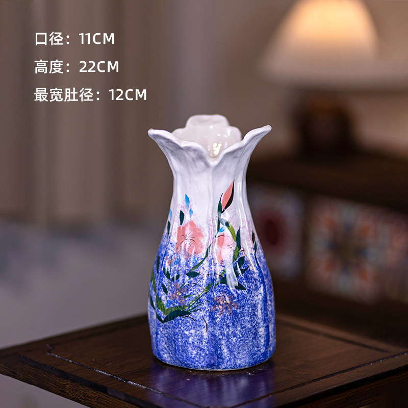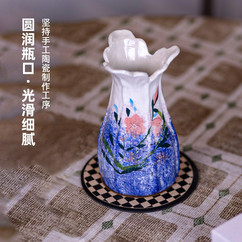 景德镇陶瓷小众风花瓶美陶手绘花口瓶水培插花器轻奢客厅装饰摆件