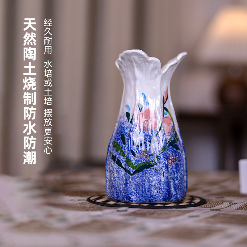 景德镇陶瓷小花瓶ins风卧室水培植物客厅摆件插花干花手工装饰品