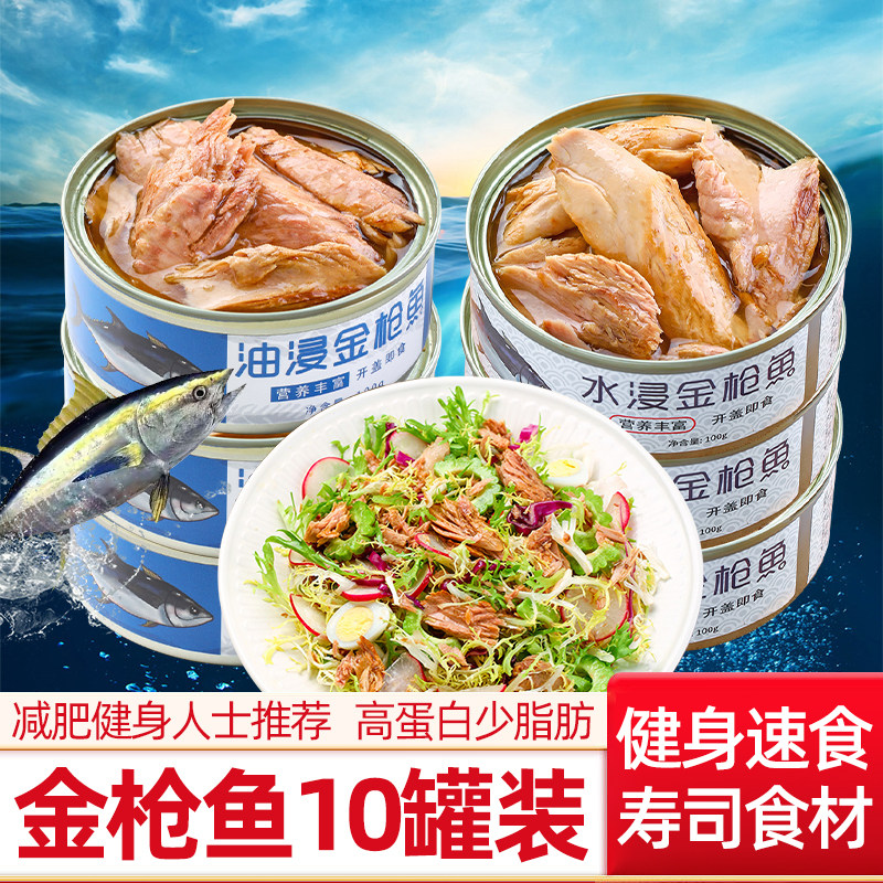 金枪鱼罐头即食油浸吞拿鱼鱼肉熟食海鲜水浸寿司沙拉深海鱼早餐