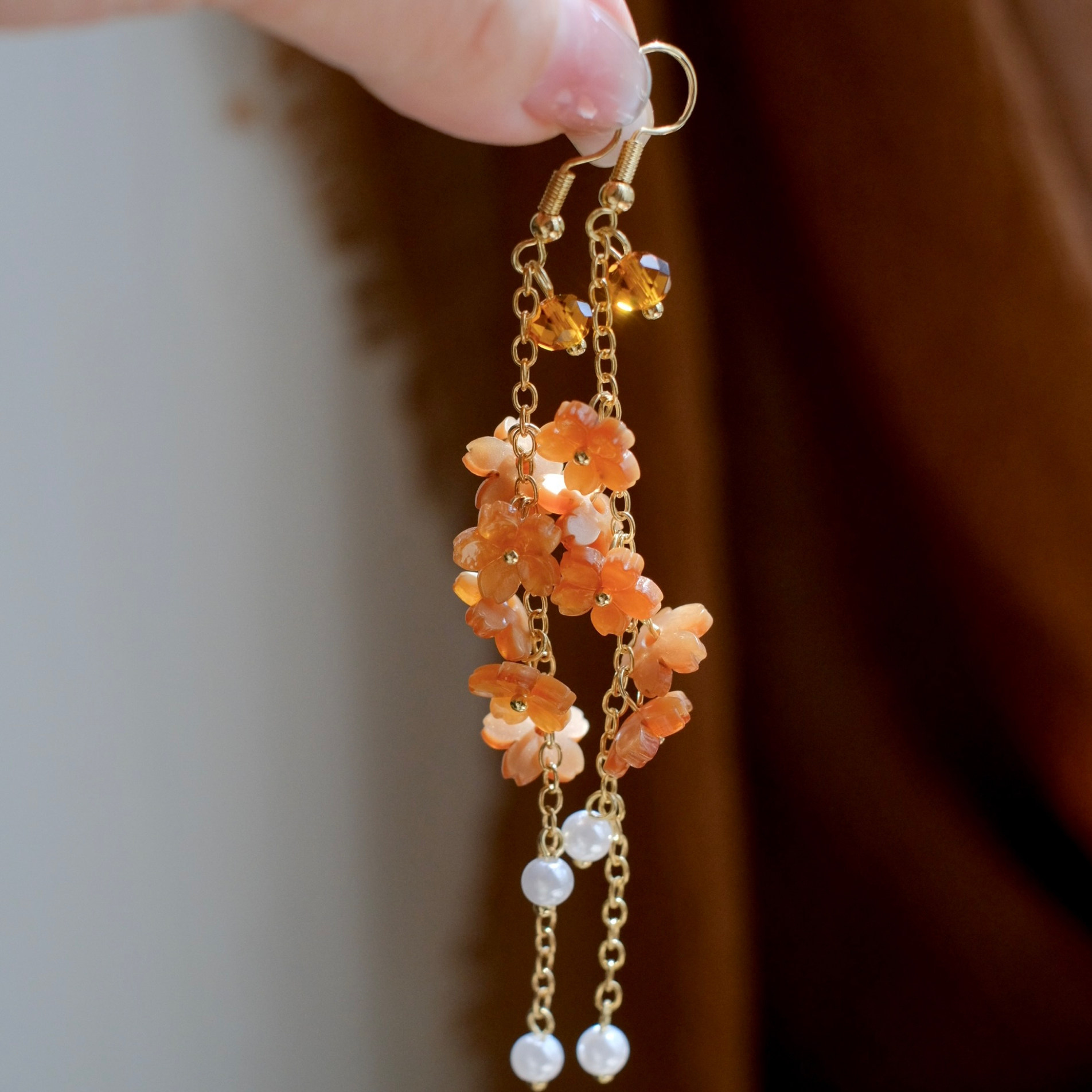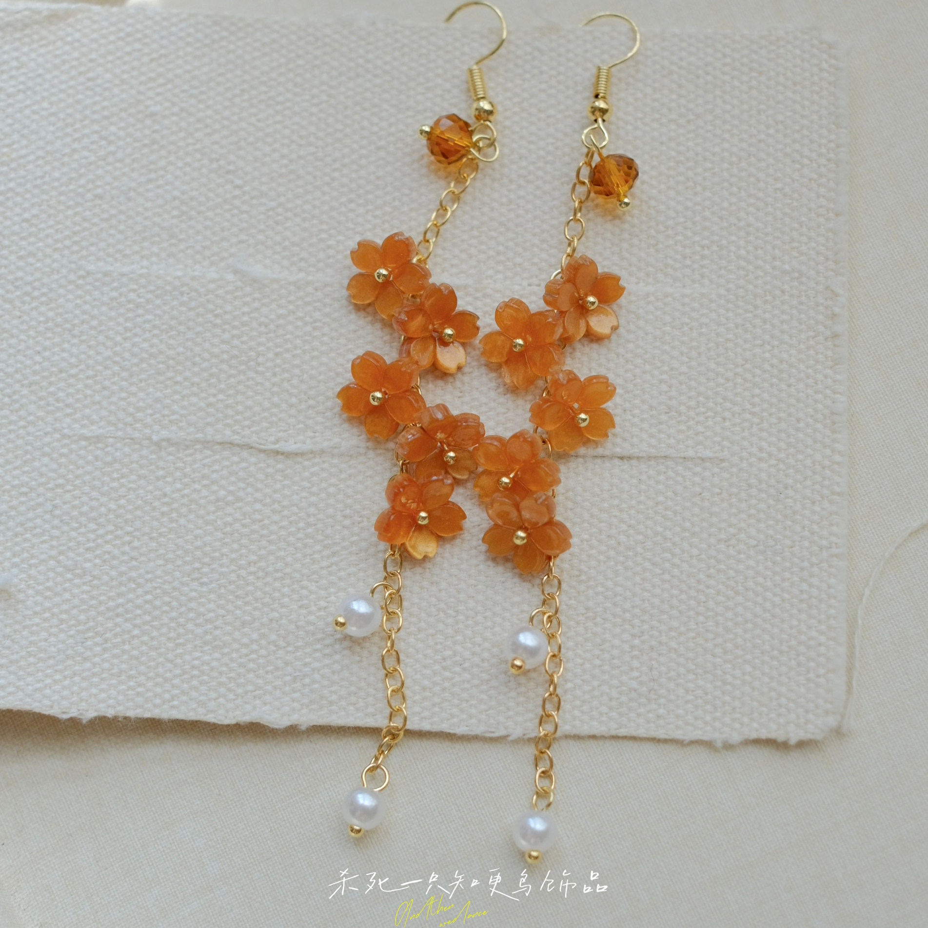 《暮秋花雨》秋冬文艺森系超仙橘咖色花朵长款流苏耳环耳饰耳夹女