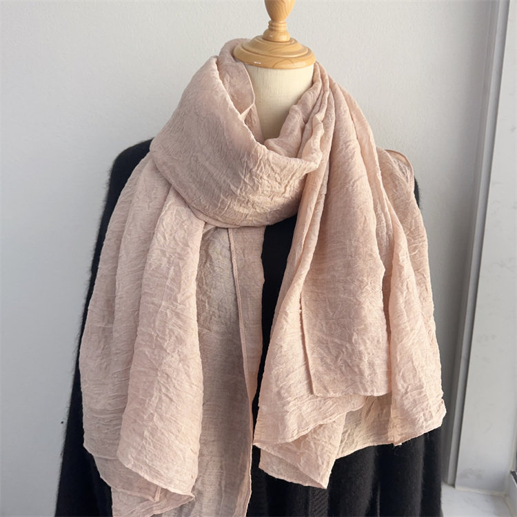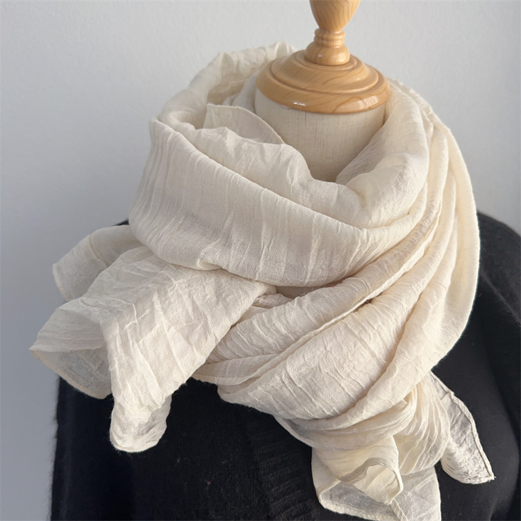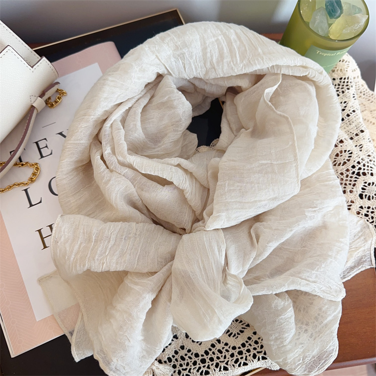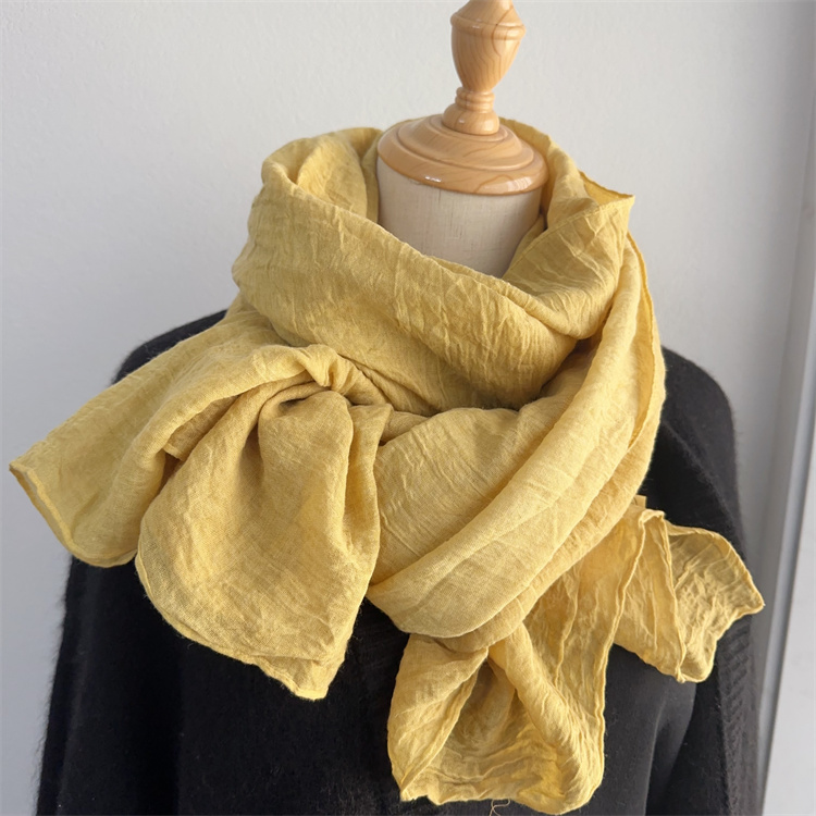 压皱春秋百搭森女文艺棉麻围巾纯色丝巾长款防晒素色围巾披肩女夏