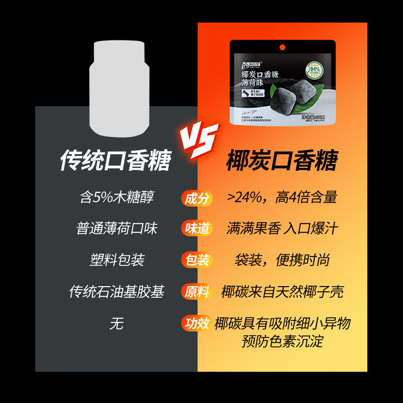 椰炭口香糖清新口气冰凉薄荷糖随身携带整箱开车糖果零食嘴巴香香