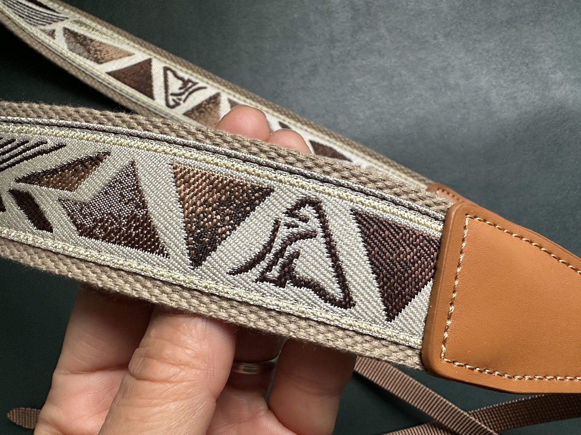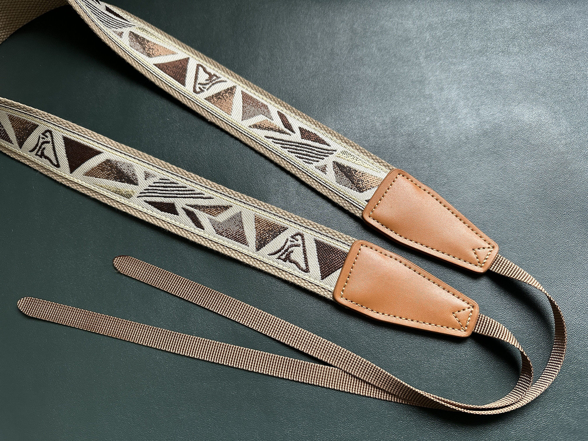 Unikstrap纯手作原创百搭咖色抽象几何精细绣花通用相机背带