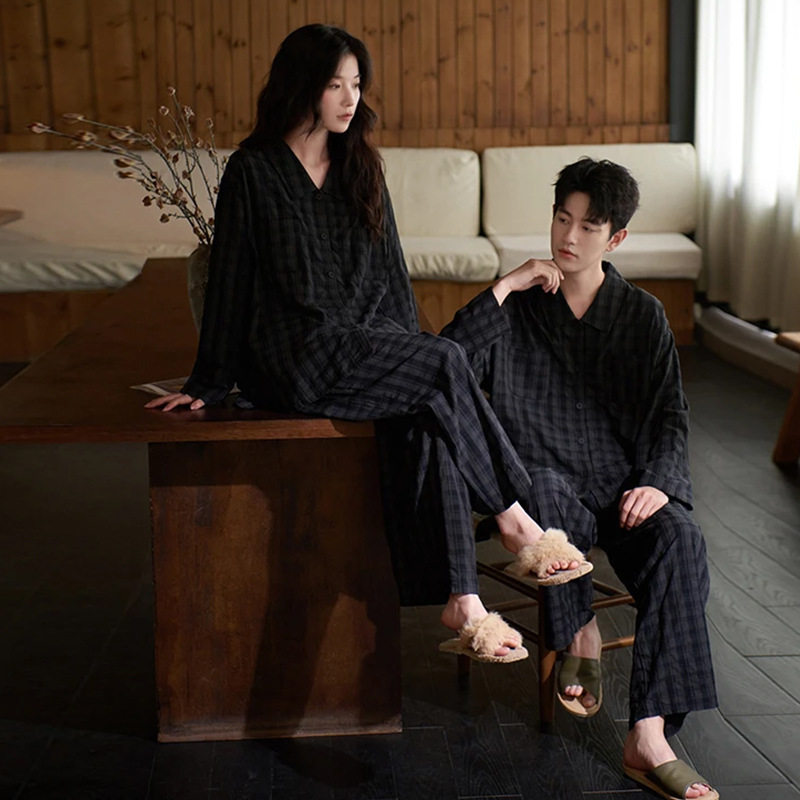 新款情侣睡衣长袖2025年春秋季女士家居服男士格子可外穿套装衬衫