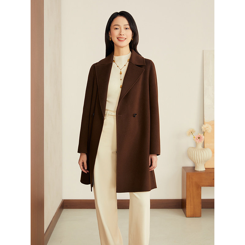 【专柜正版】高端双面羊毛羊绒毛呢大衣双排扣毛呢外套时尚洋xz8