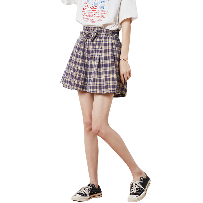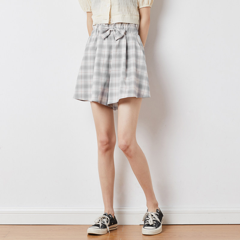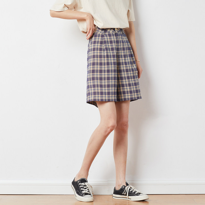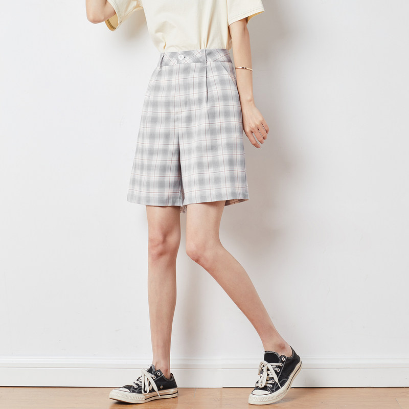 唐狮夏装新款休闲短裤女显瘦裙裤网红格子裤女宽松高腰短裤夏