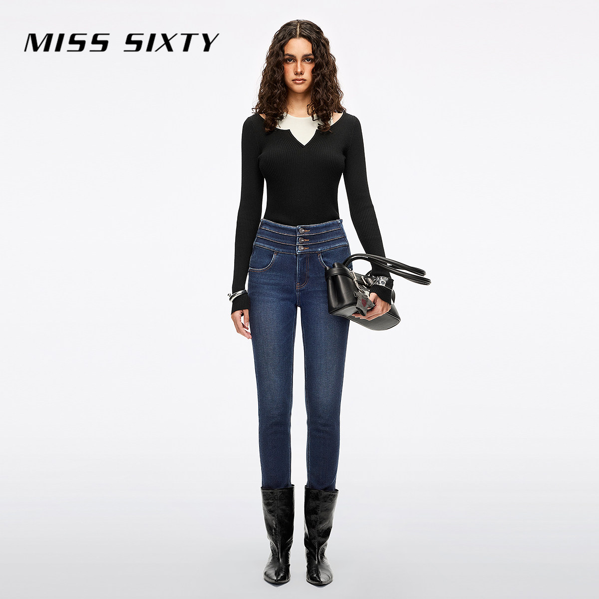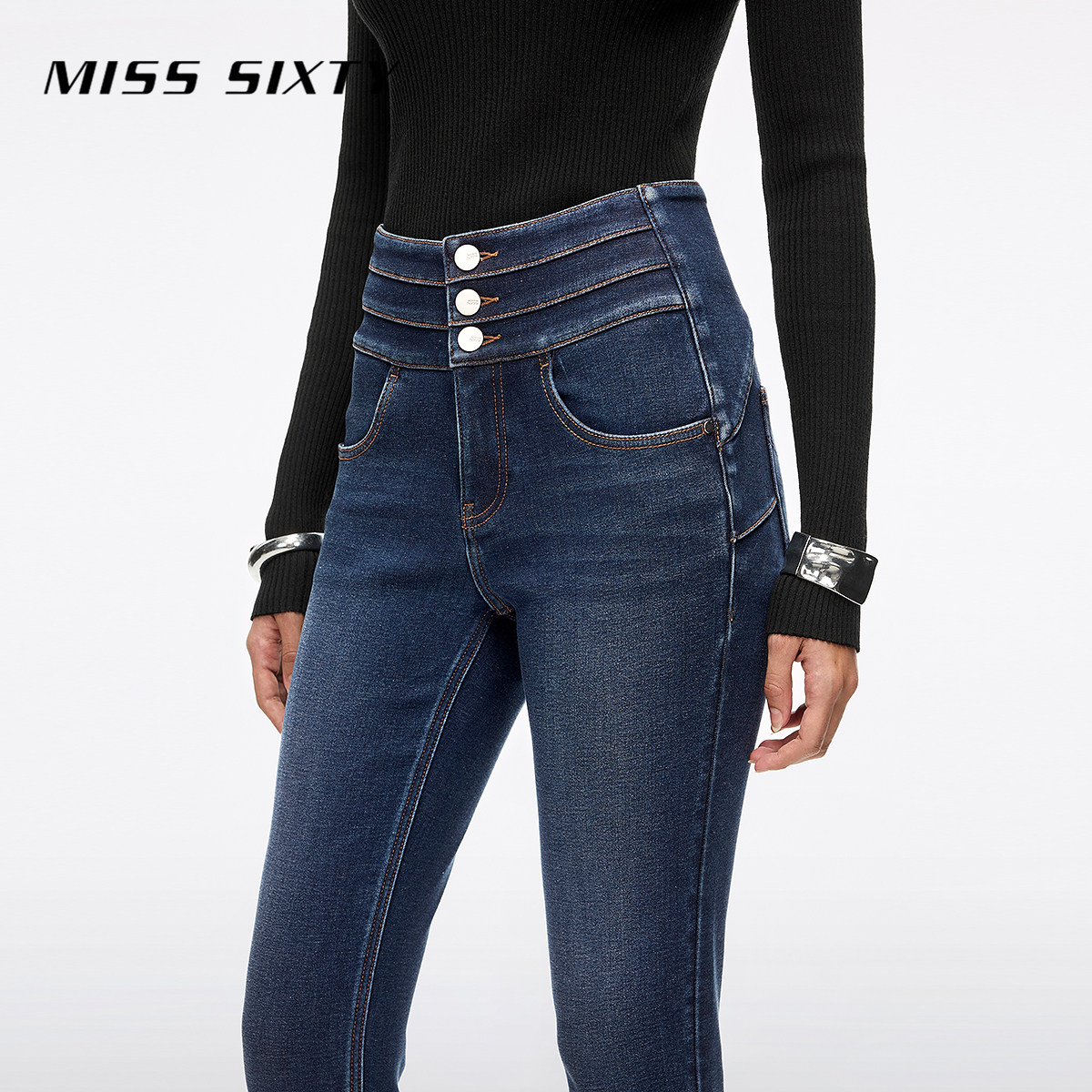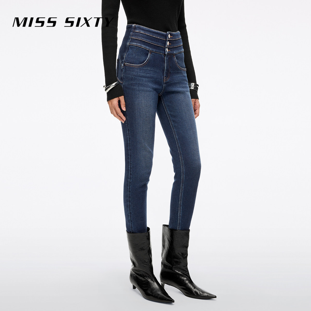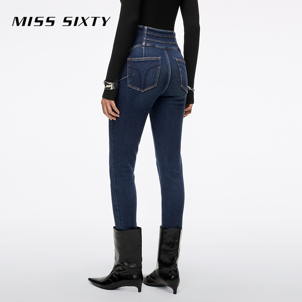 【保暖复合绒】Miss Sixty2025冬季新款牛仔裤三环腰加厚小脚靴裤