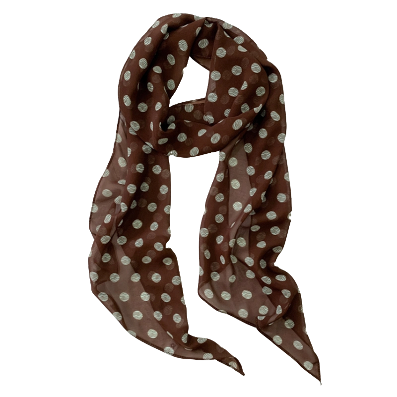 棕色法式复古波点丝巾印花高级脖女气质新款领巾百搭发带长条围巾