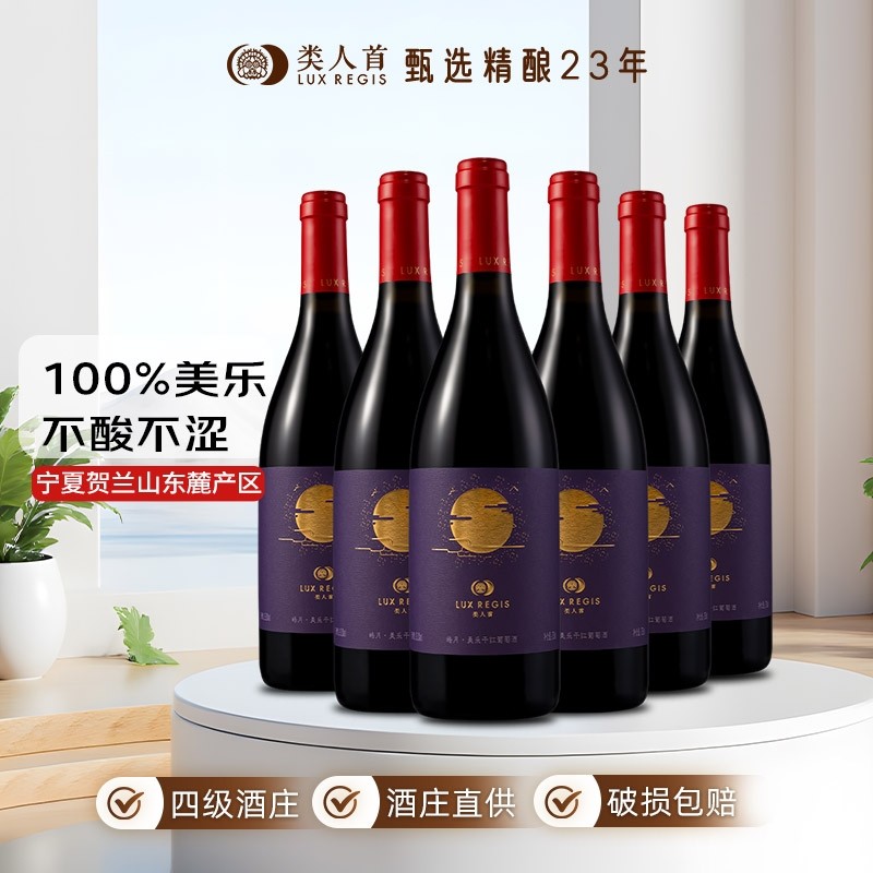 类人首 宁夏红酒皓月美乐橡木桶干红葡萄酒750ml*6支装