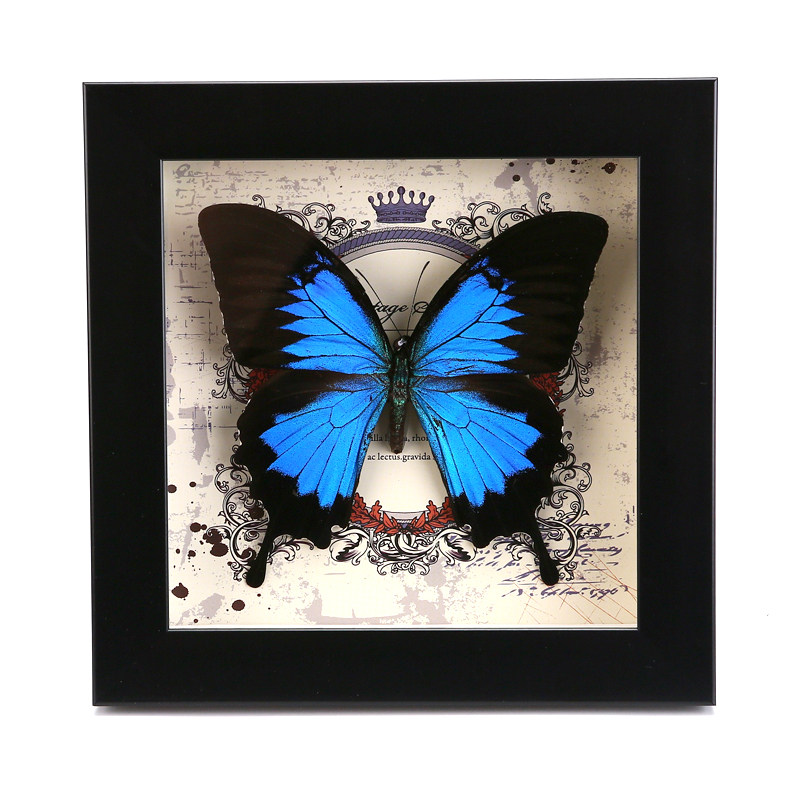 真蝴蝶标本相框欧美装饰画DIY复古摆台装饰生日礼物翠凤蝶绿带